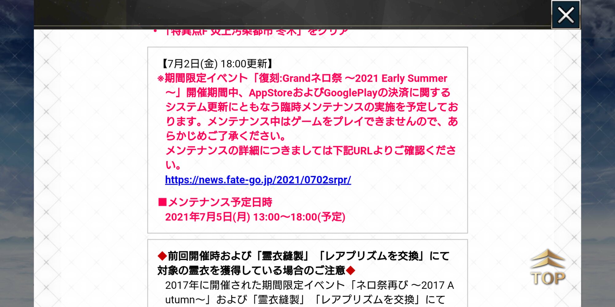 2017年の時も臨時でメンテしてましたね