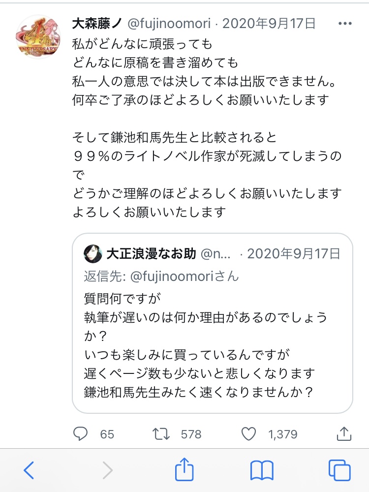 ラノベ以外の仕事をしてる作家も最近多いのでラノベの刊行数で比較するのは早計ゾ。鎌池先生の執筆スピードがすごいことは疑いようもない事実であるが。>>108
