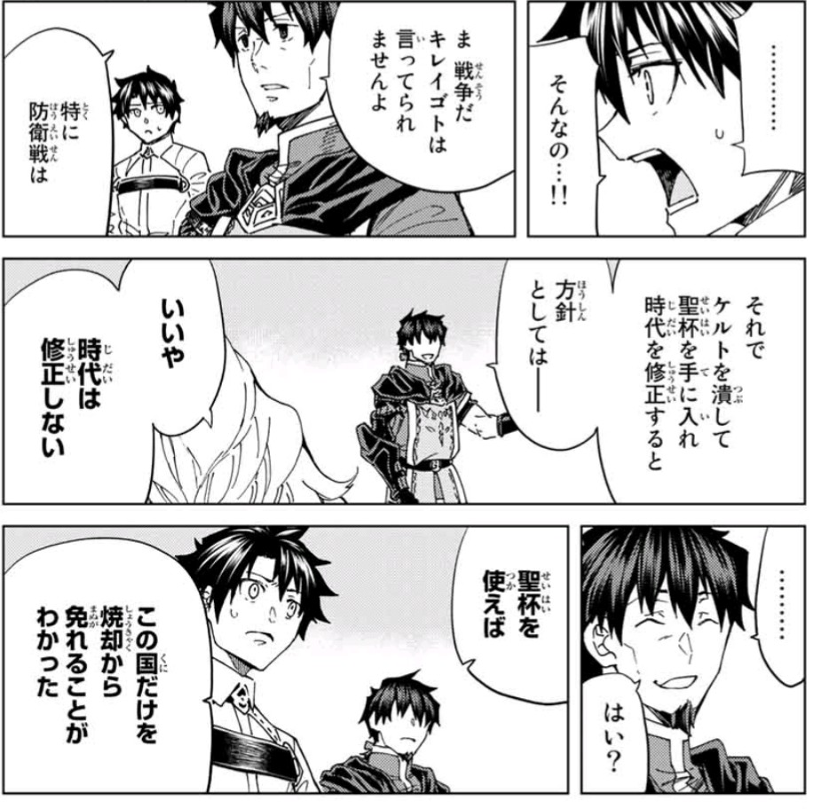 今回のカワグチ先生の脱稿コールだった笑顔のヘクトールと鼻血出したカルナさんを見て「あー、なんだかオジサン怒ってそうだなー。オケアノスに比べたら笑顔減ってるなーって思ってたけどこの笑顔は怒ってる笑顔じゃないかなー。しんどい状況続きで言わないけどオジサンなりに思うことはあるんだろうなーそういう話出来るほど仲良い人もおらんしテスラが敵だったと聞いて目をそらすくらいにはまだ気まずいわけだし」と思いを馳せていたのですがそういえばエジソン陣営とは初手からカチンときてそうな雰囲気があったのでその辺にも触れてくれていたら嬉しいなあと思います