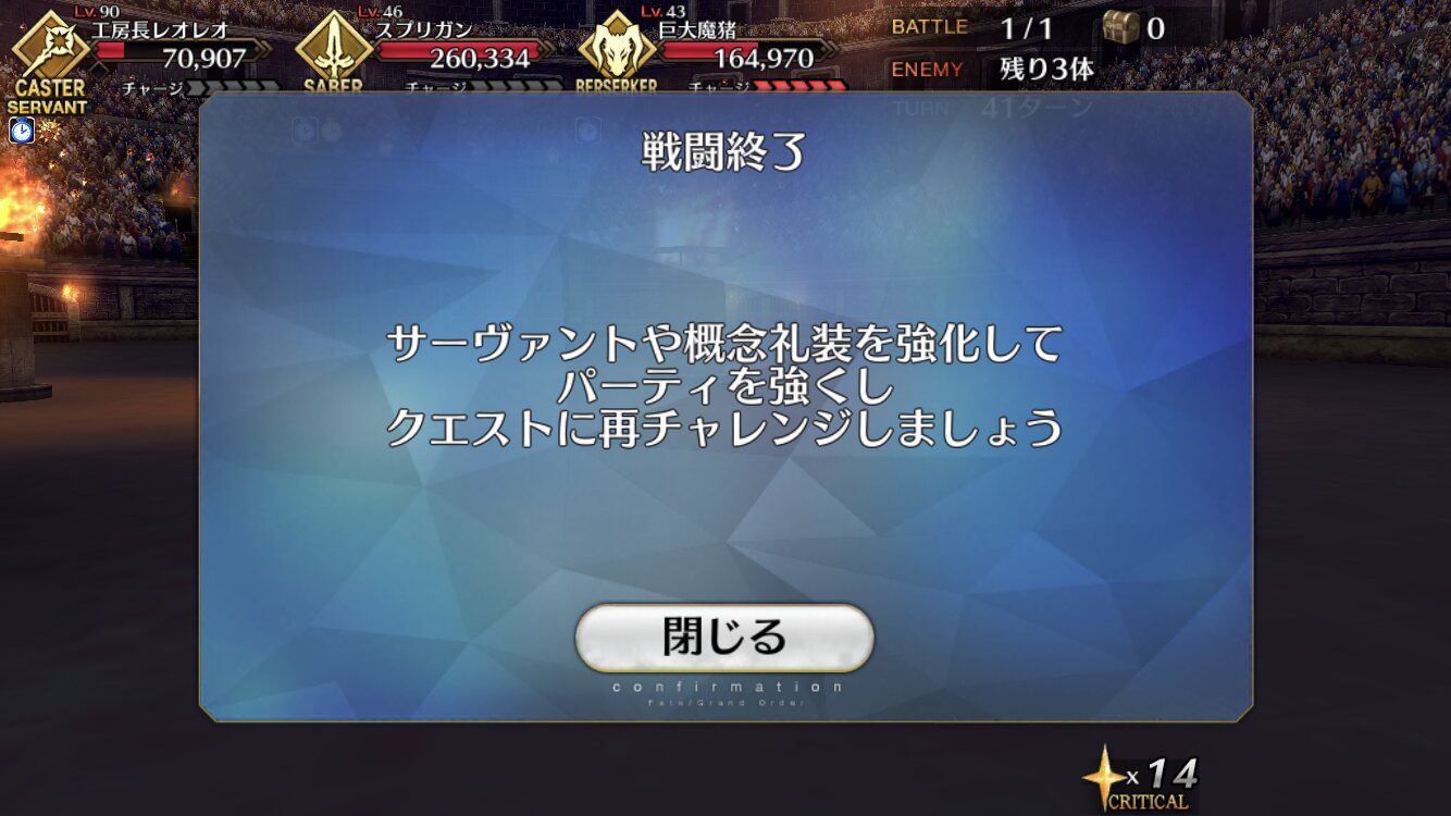 なるほど、エルキだな。ローマもいいぞ!ぼく「特攻礼装持ってぶん殴っていればいつかは勝てる」