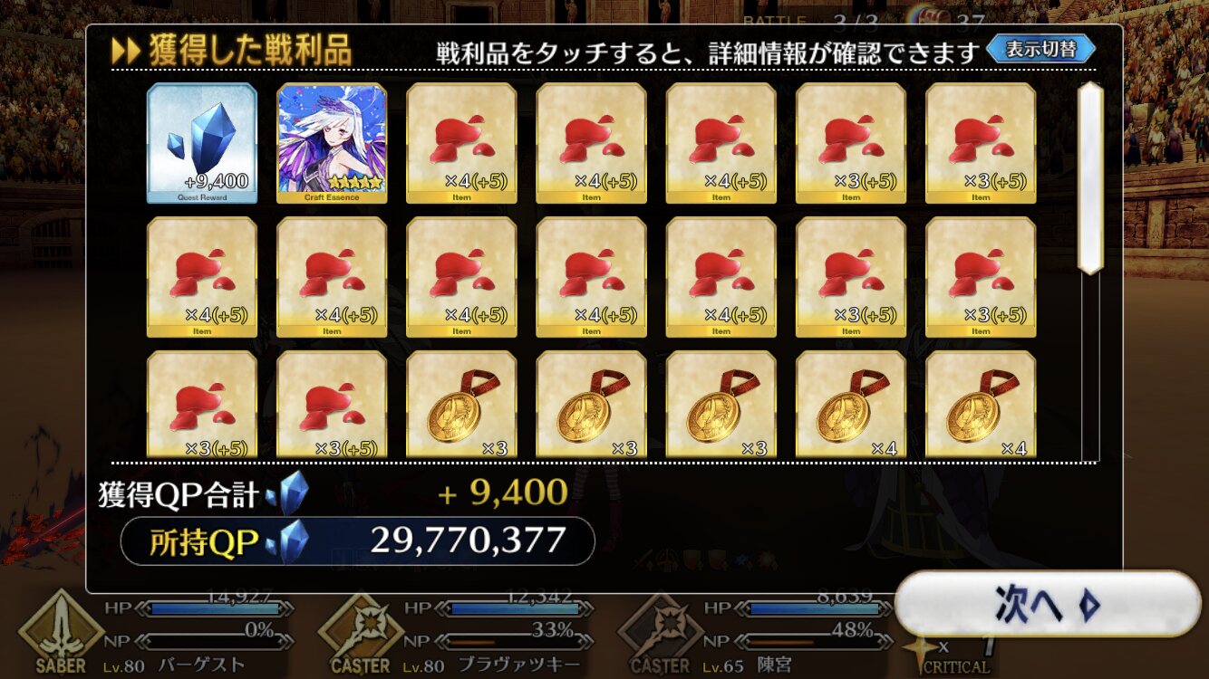 そんぐらい回れば種火でプレポがパンパンだからね。次のレイドまたはボックスまではもつ>>55