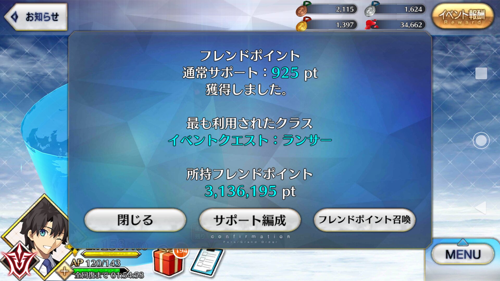 フレポでもAtkの方が出やすいのかな?ボックスは副産物としてフレポから出てくるフォウくんも稼げるからね。現在150。なんとか200までラストスパート行けるかしら