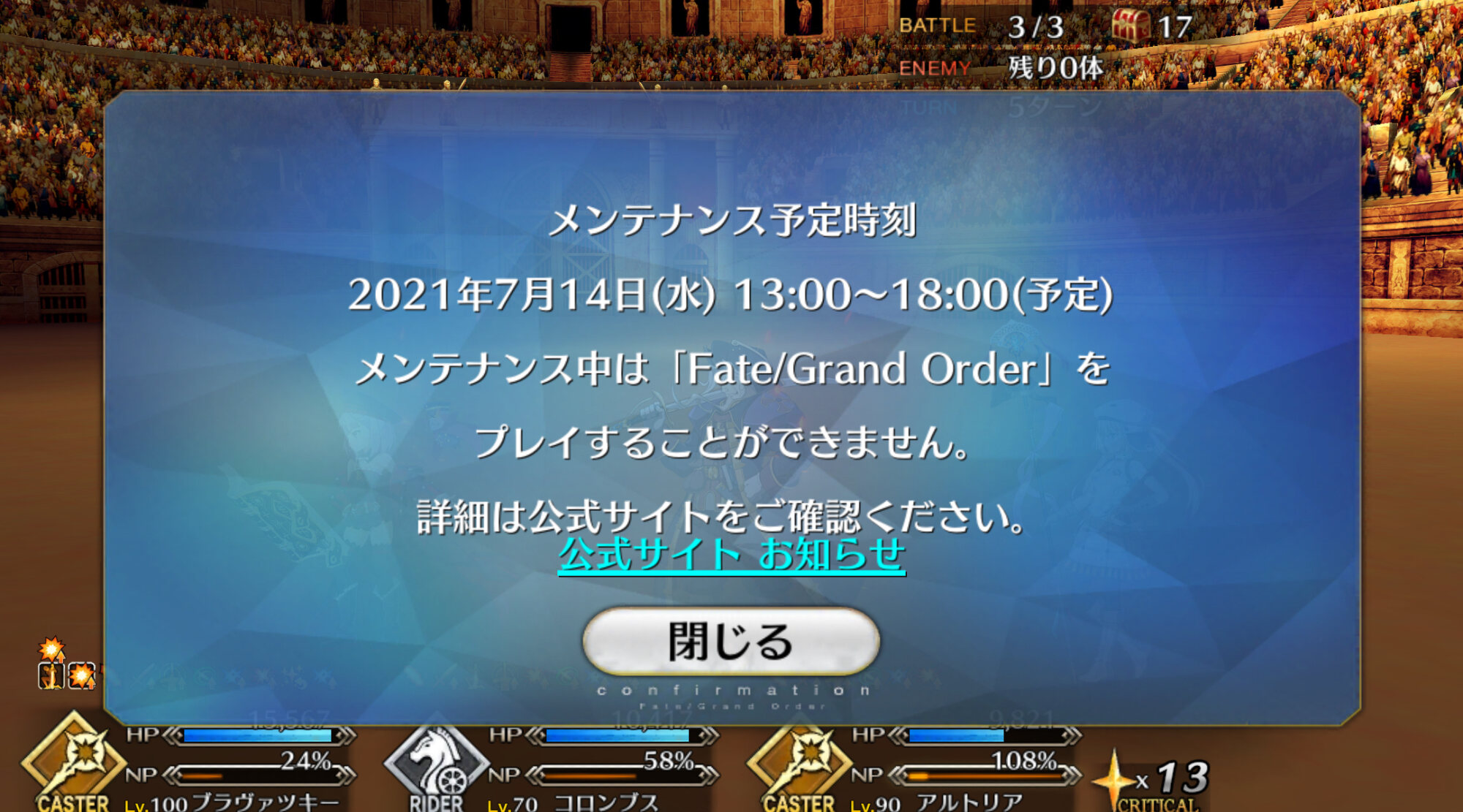 今はメンテ中でfgoができるのは18時からになります