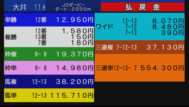 単勝で万馬券とはたまげたもんだな!>>145