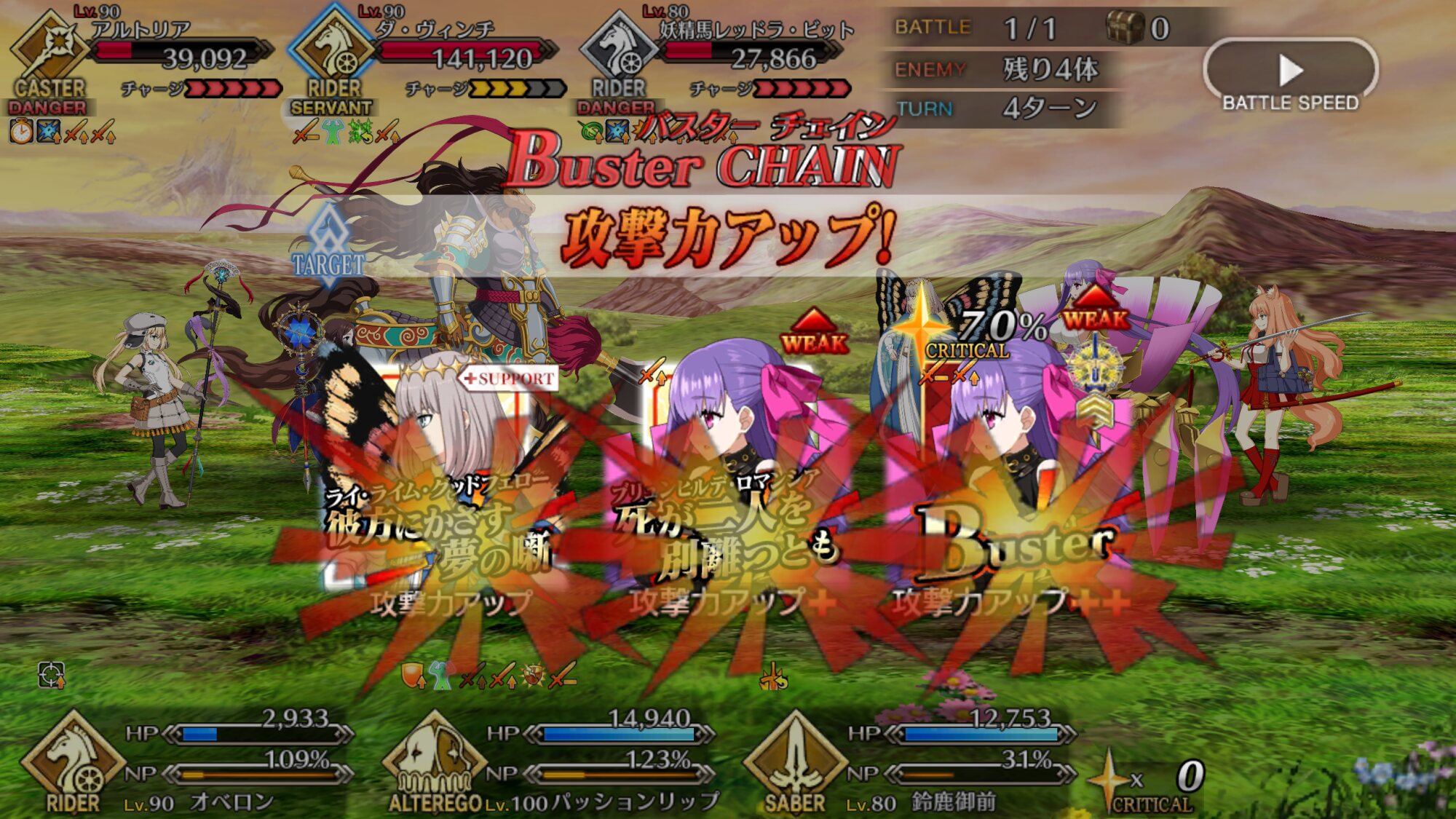 なんか分かりづらくなっちゃったな、マーリンのバフがオベロンに対してだけじゃなくマーリン自身含む全体に対して、効果が上手く入ってくれなくなるみたいね。>>963