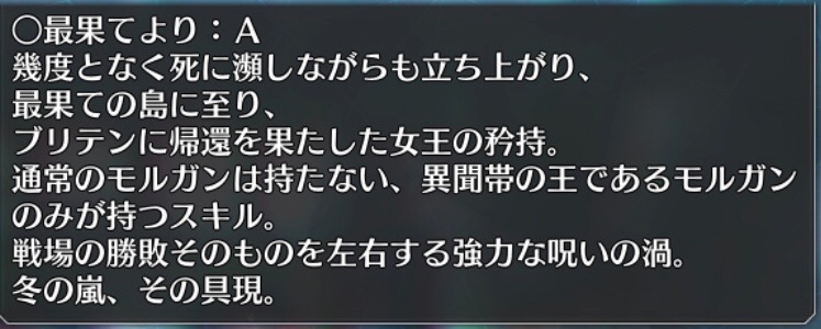 モリガンを助けたクー・フーリンがキャスニキとしてモルガンを救うような展開がエピローグにあると淡い期待をしても良いやろ。