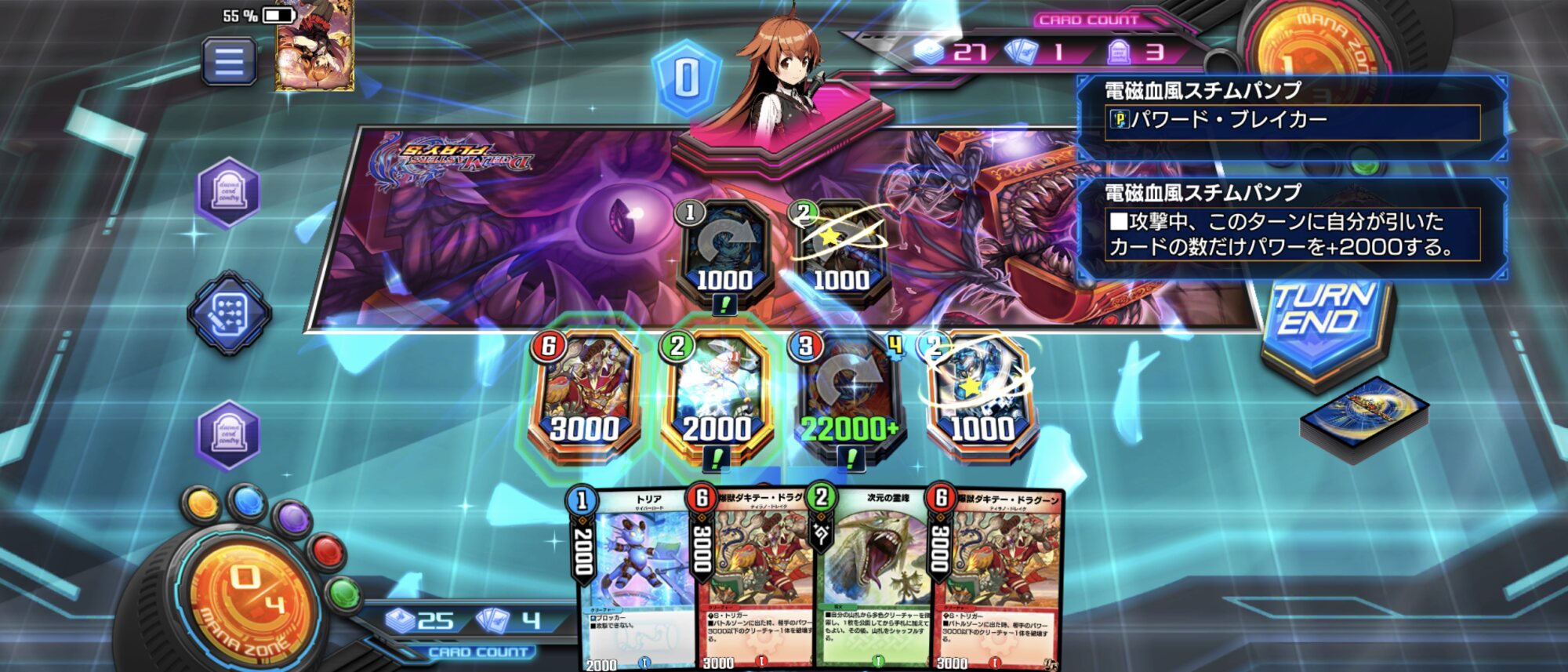 (上の画像は敵の手札5枚あるけど、これはアクアンを2体出してたため。本来なら手札0レベル)>>24