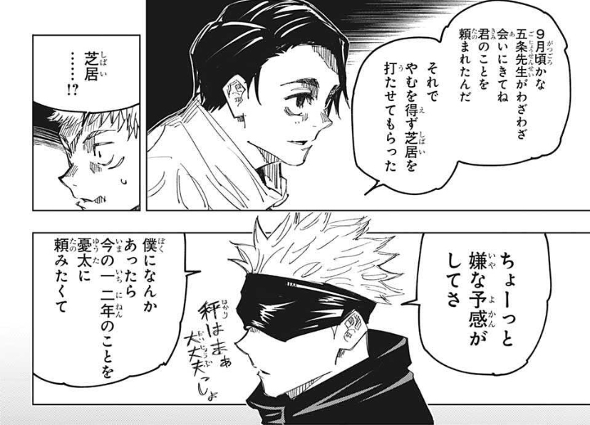 自分を足止めできるくらい強くて術式を乱せる黒縄を使うミゲルに対して「呪力量だけなら自分より上で術式使わずに呪力だけで他の圧倒する」乙骨をつける采配>>41