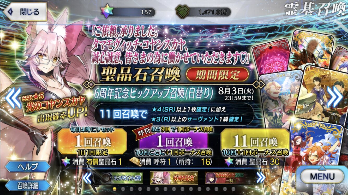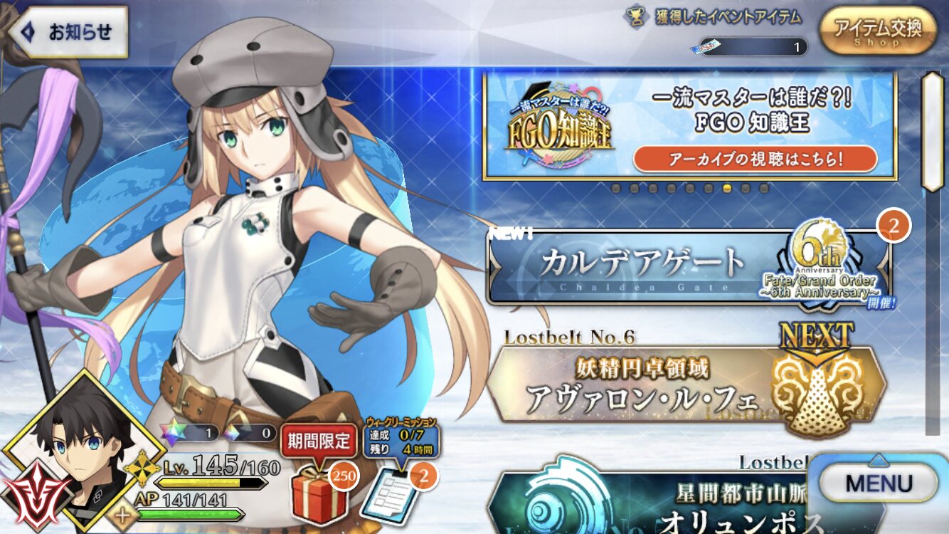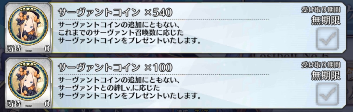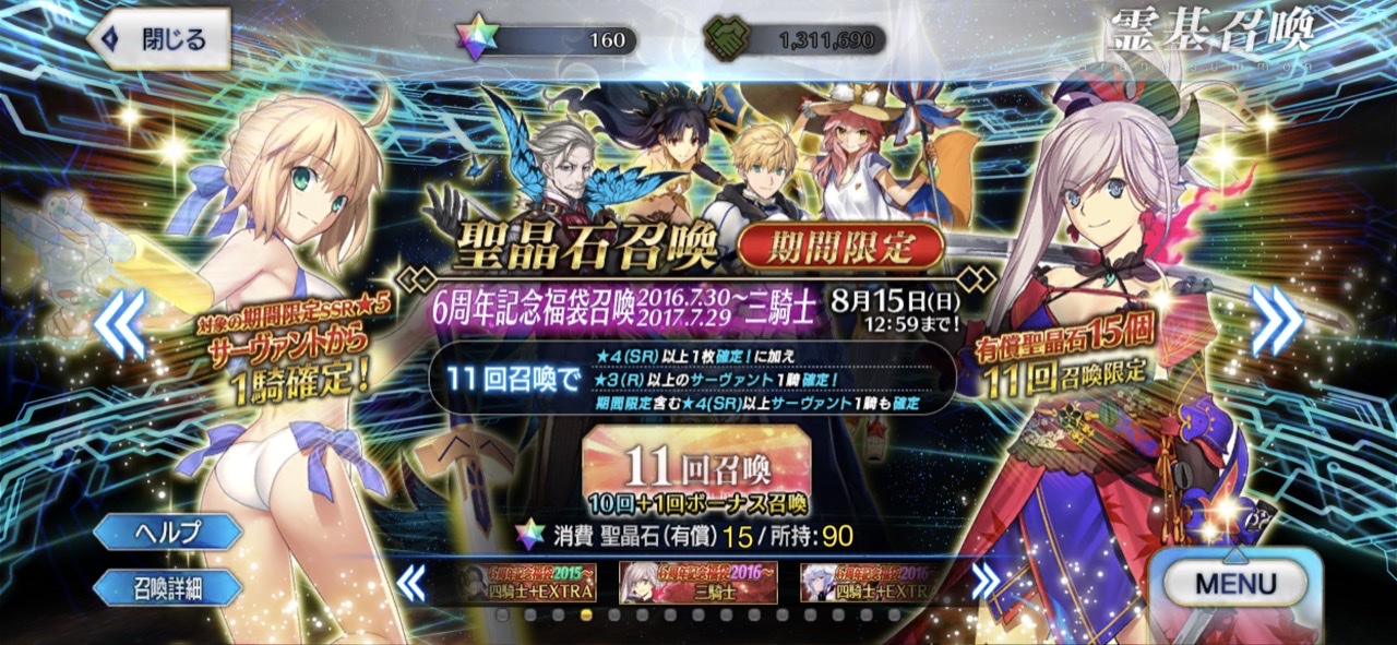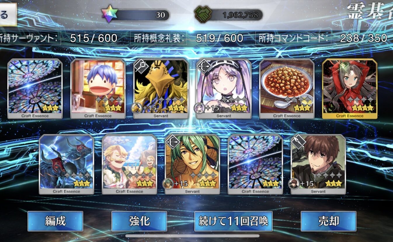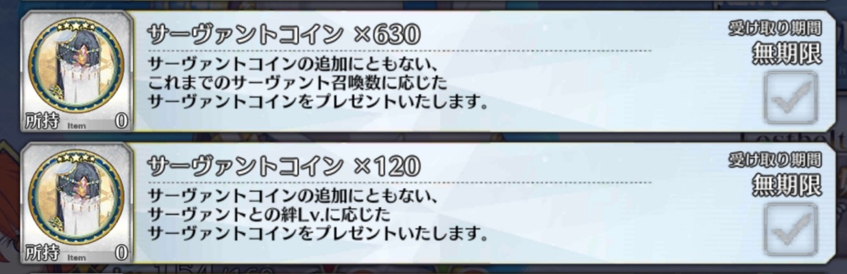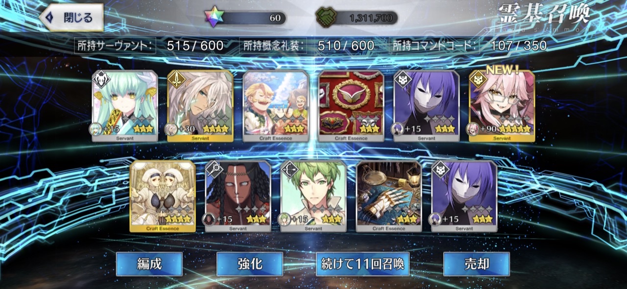 三顧の礼のメリジューヌの人かな?おめでとうございます!そういえばだけど、鯖と礼装の所持数の上限増えたね