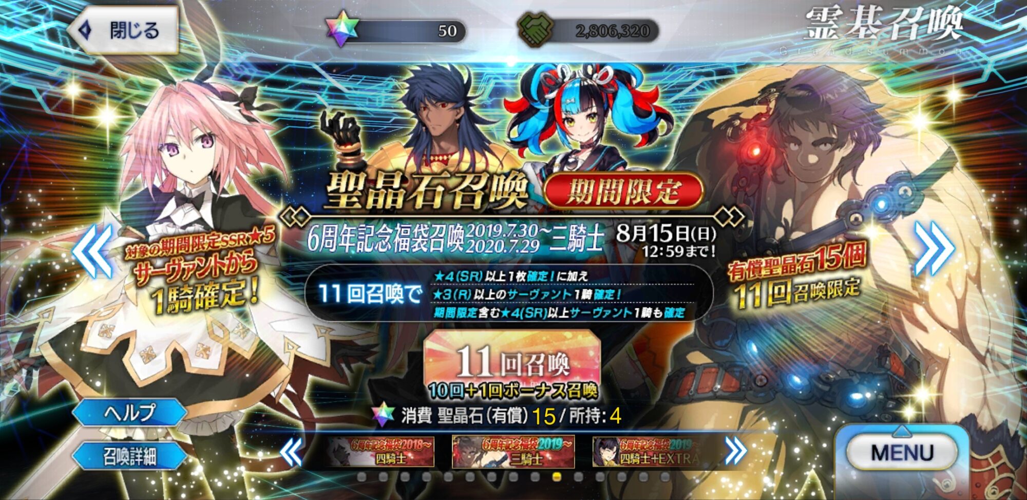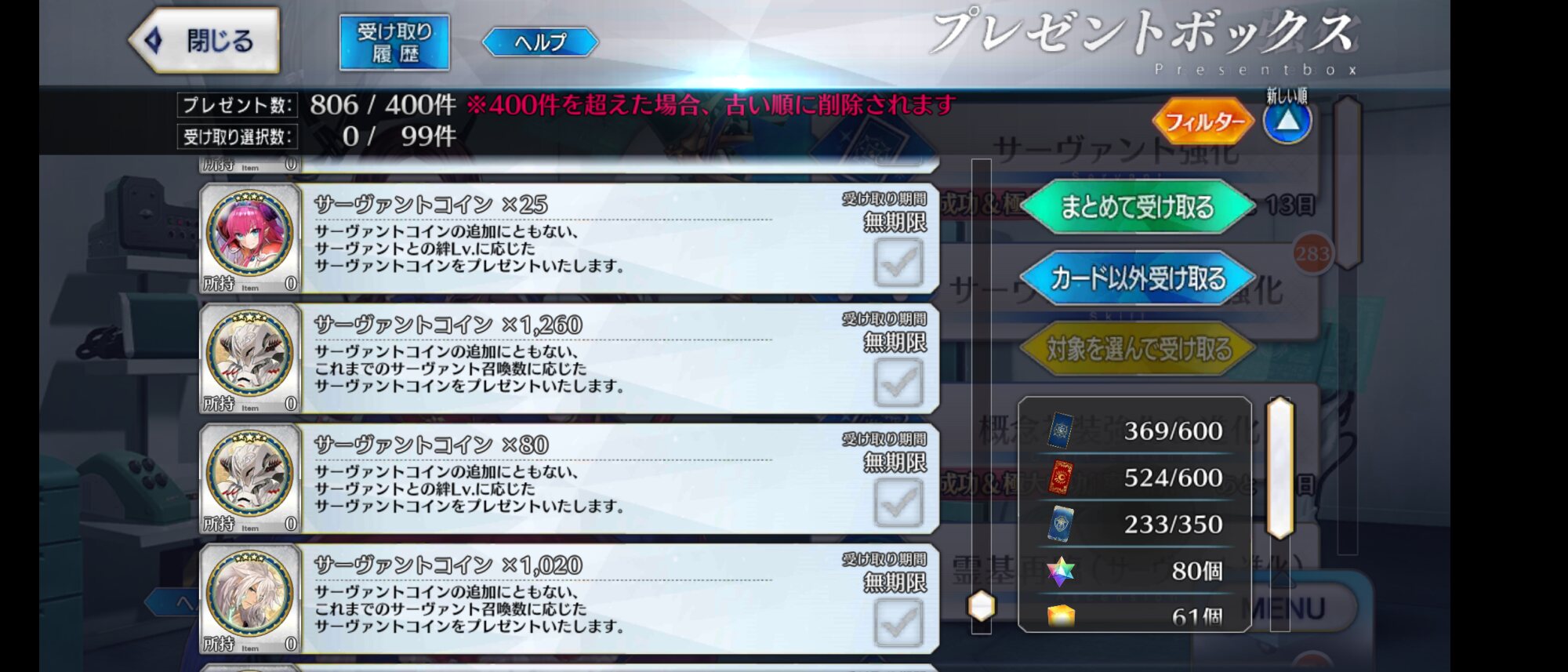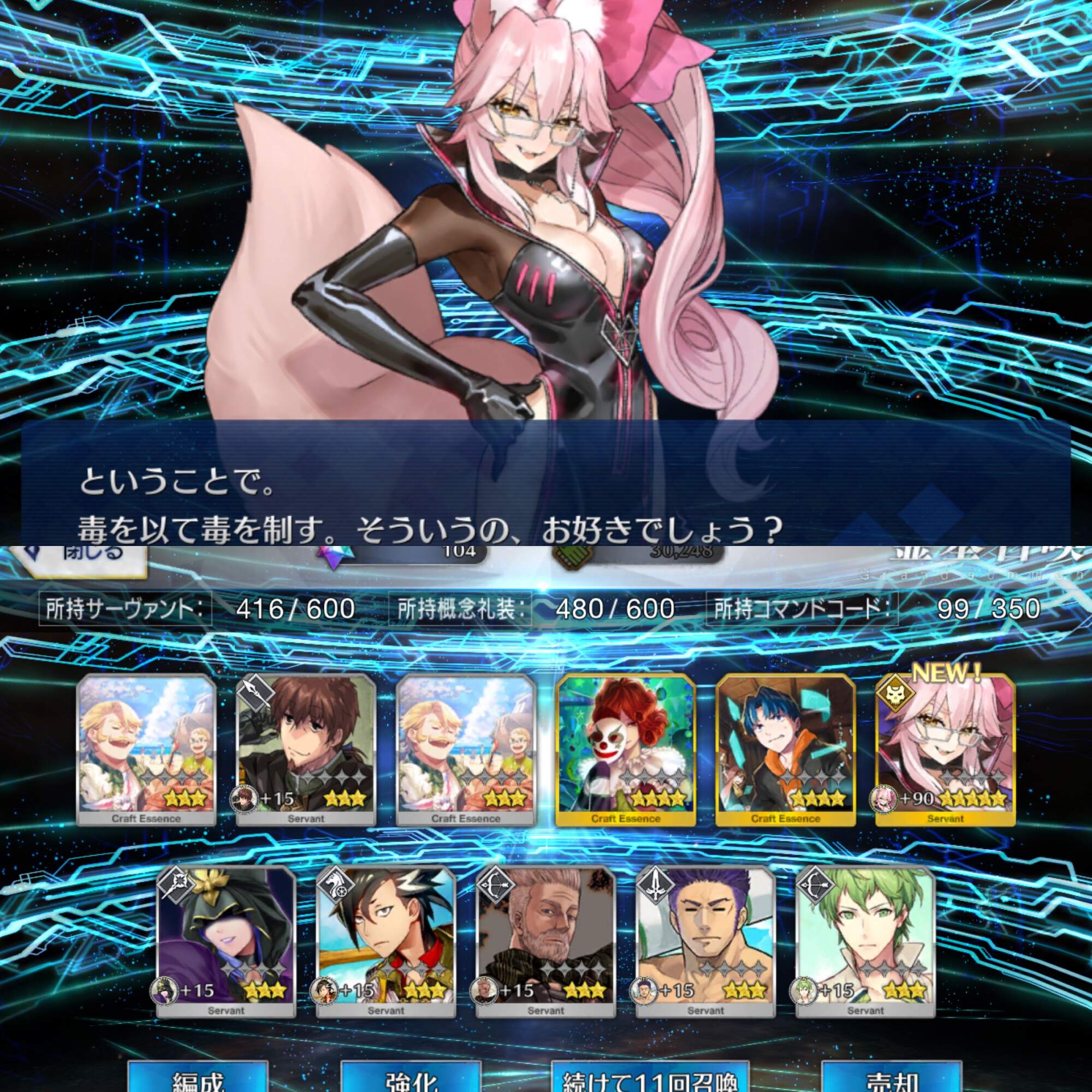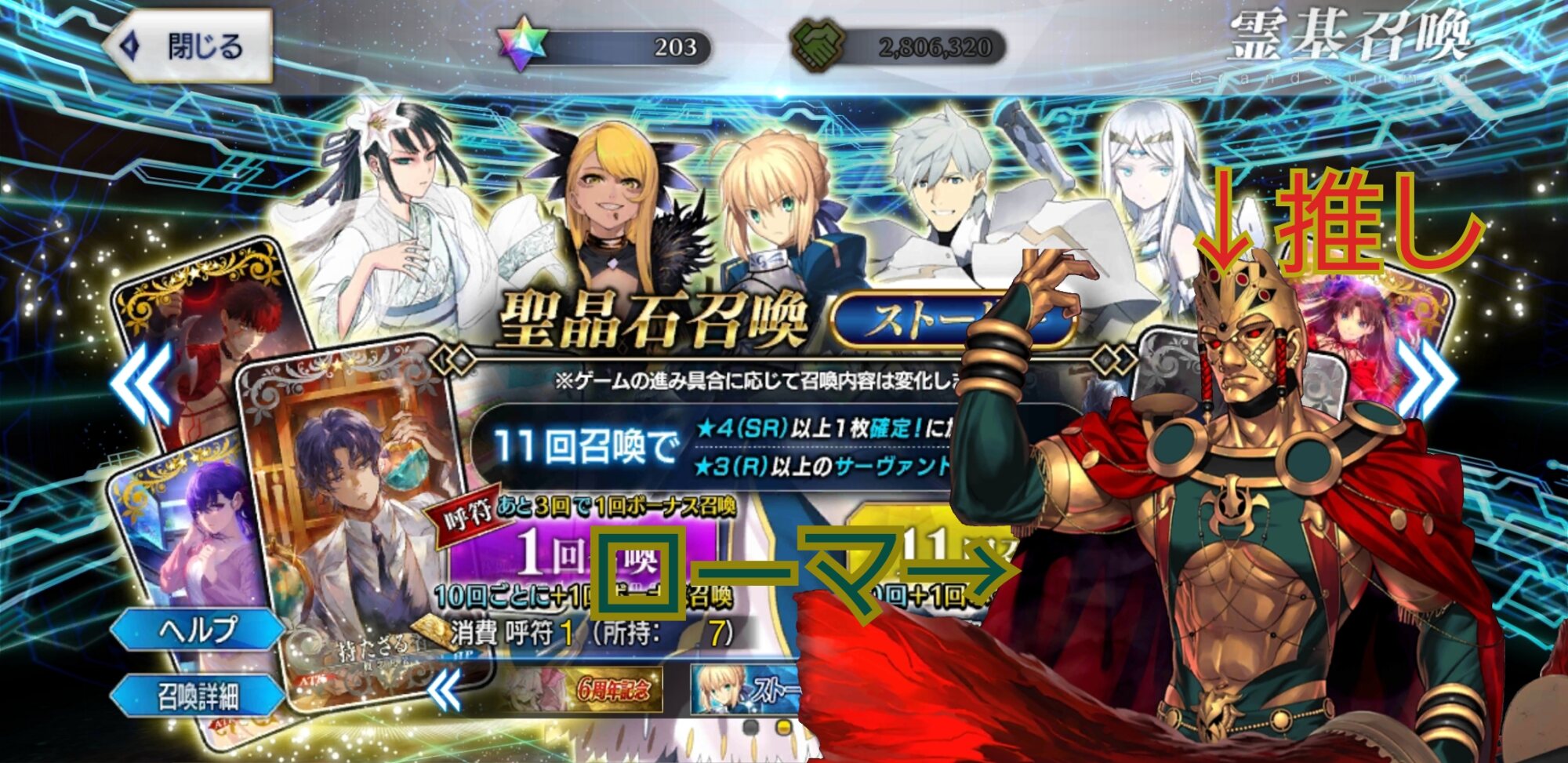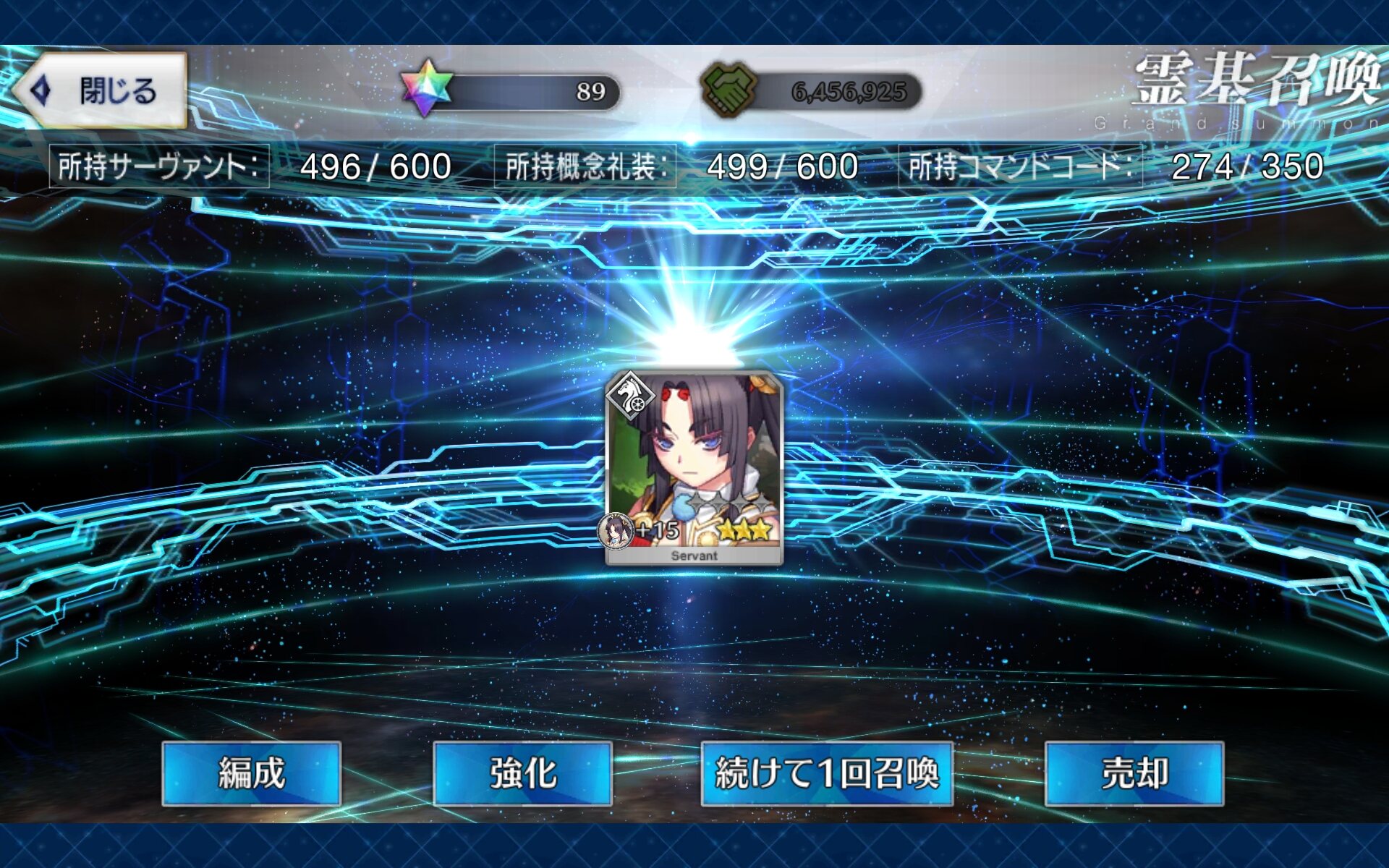 三顧の礼のメリジューヌの人かな?おめでとうございます!そういえばだけど、鯖と礼装の所持数の上限増えたね