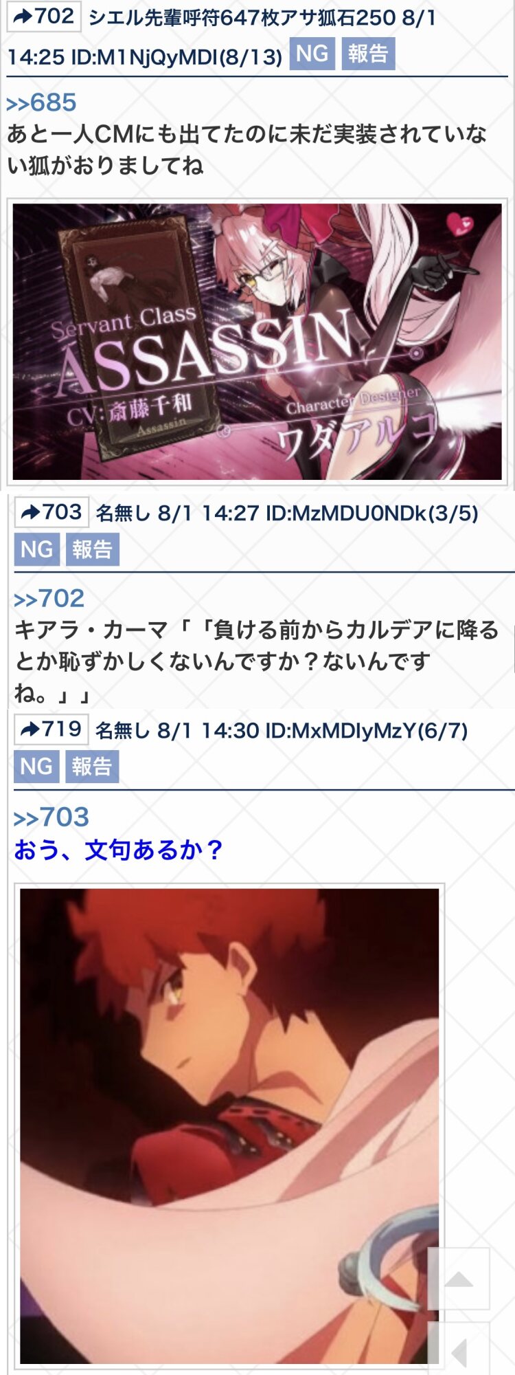 ネタバレ、最終再臨バレに関する話題で書き込むのが躊躇われる場合は下のスレへ。