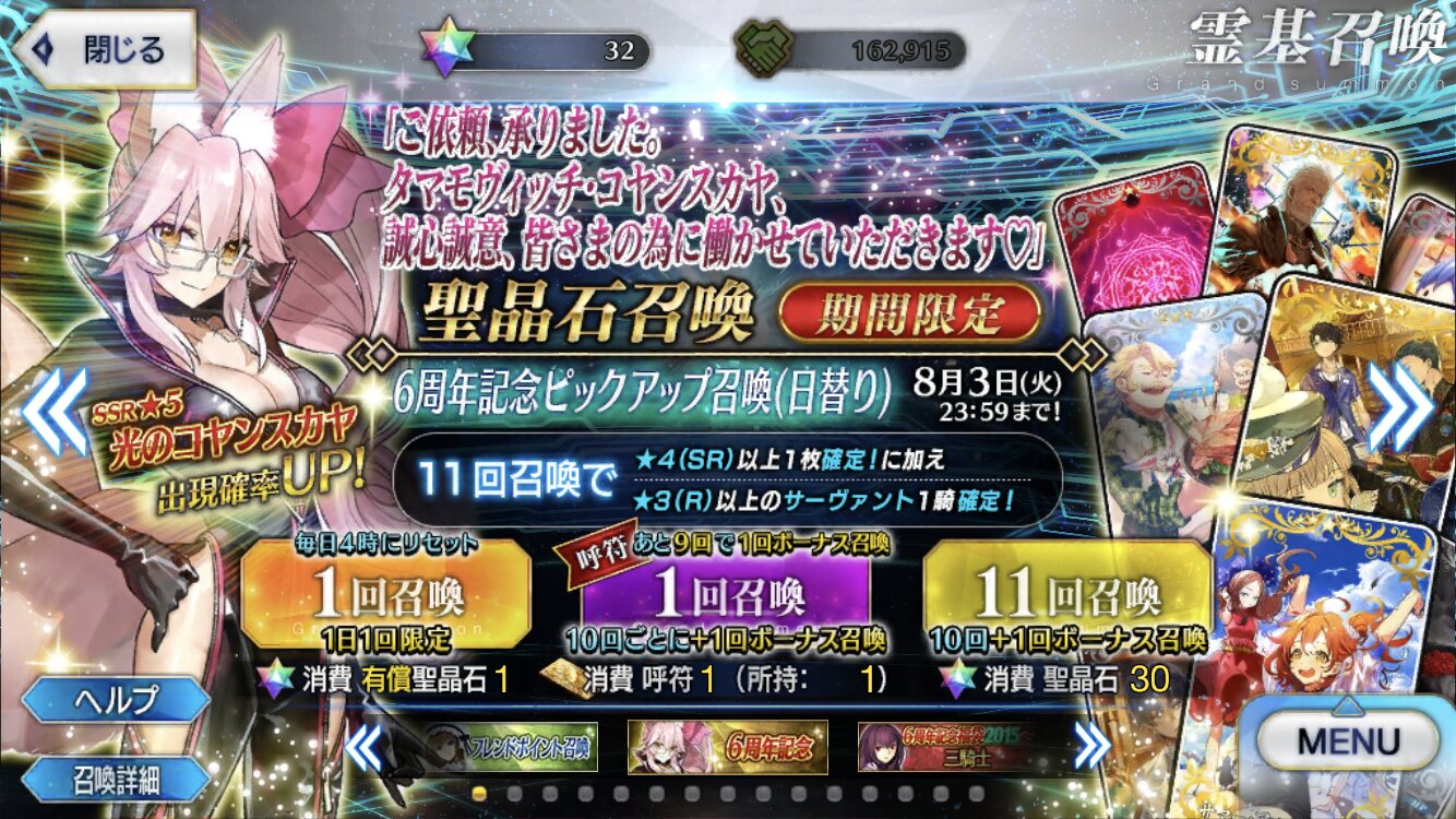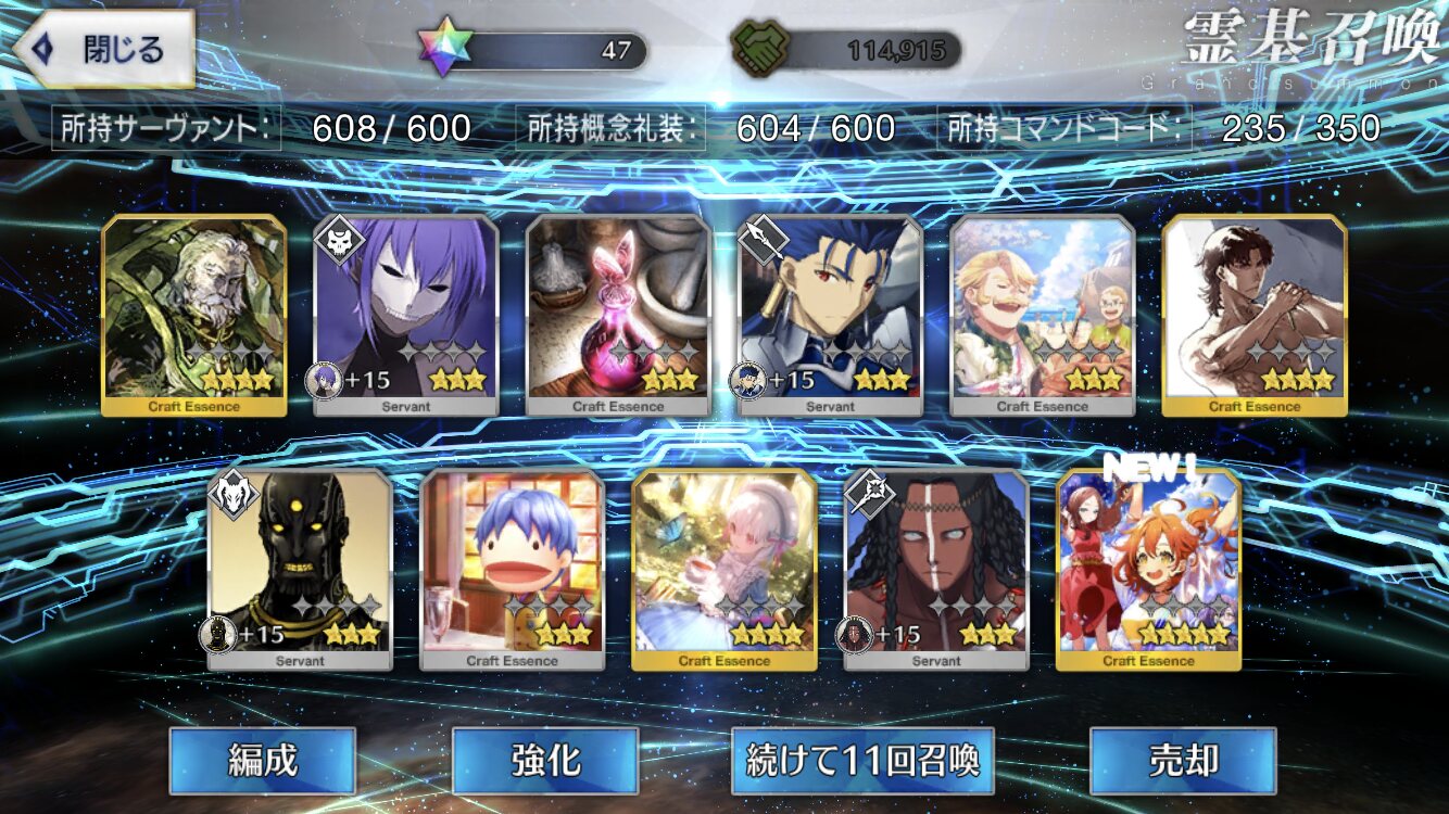 うちもエジソンとか昔の福袋で二枚抜きとかしたからか来なかったよコマンドカード選択画面から戻れる機能実装したときに不満垂れ流してた人が一定数いたようになんかよくわからんけど不満持つ人はいるね