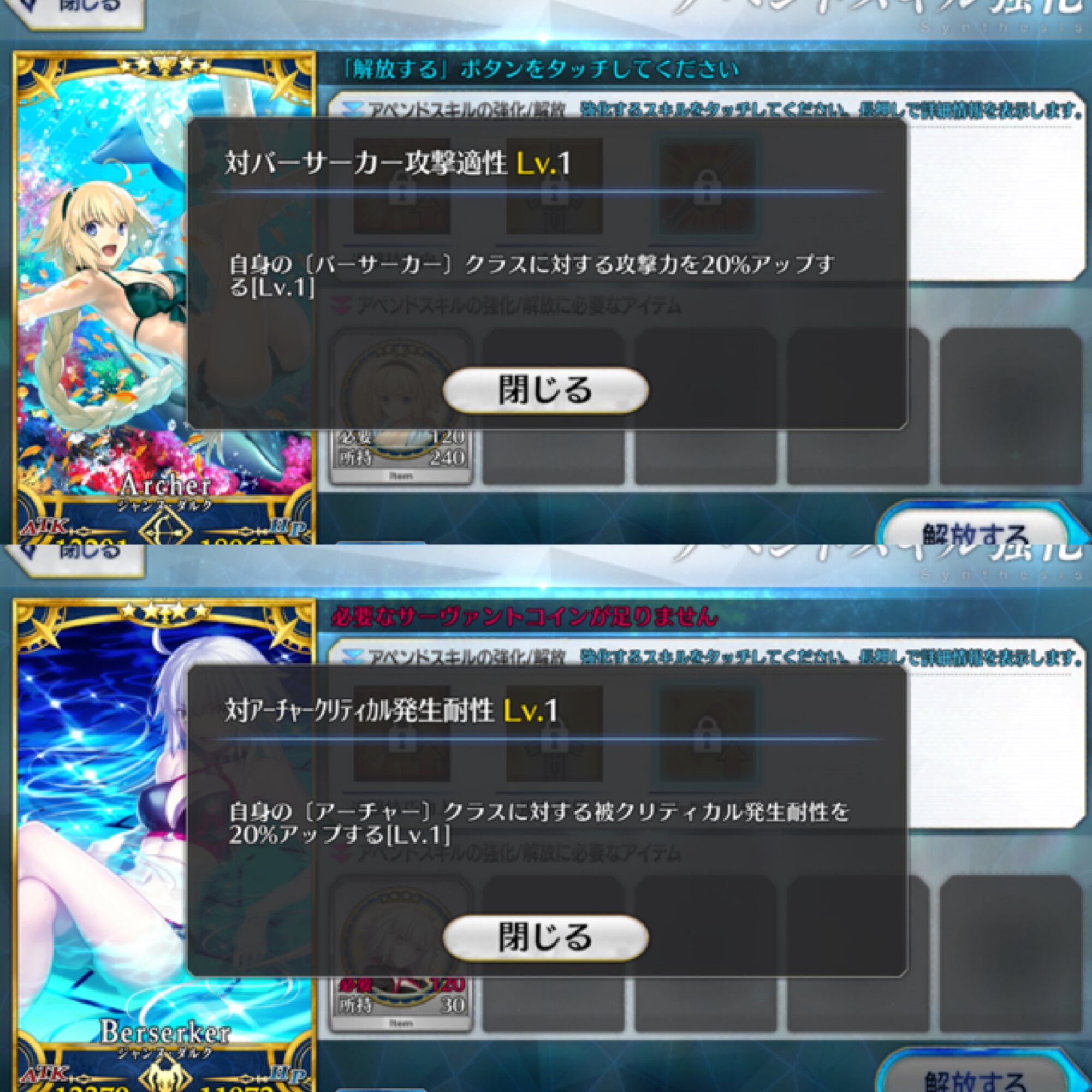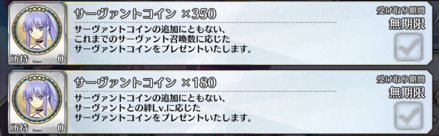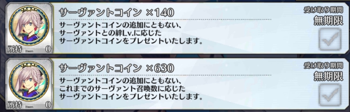 ②を優先したいけど、性能的に互角なら①で決する所存つまり配布サーヴァントのコインが一番大変なのかな
