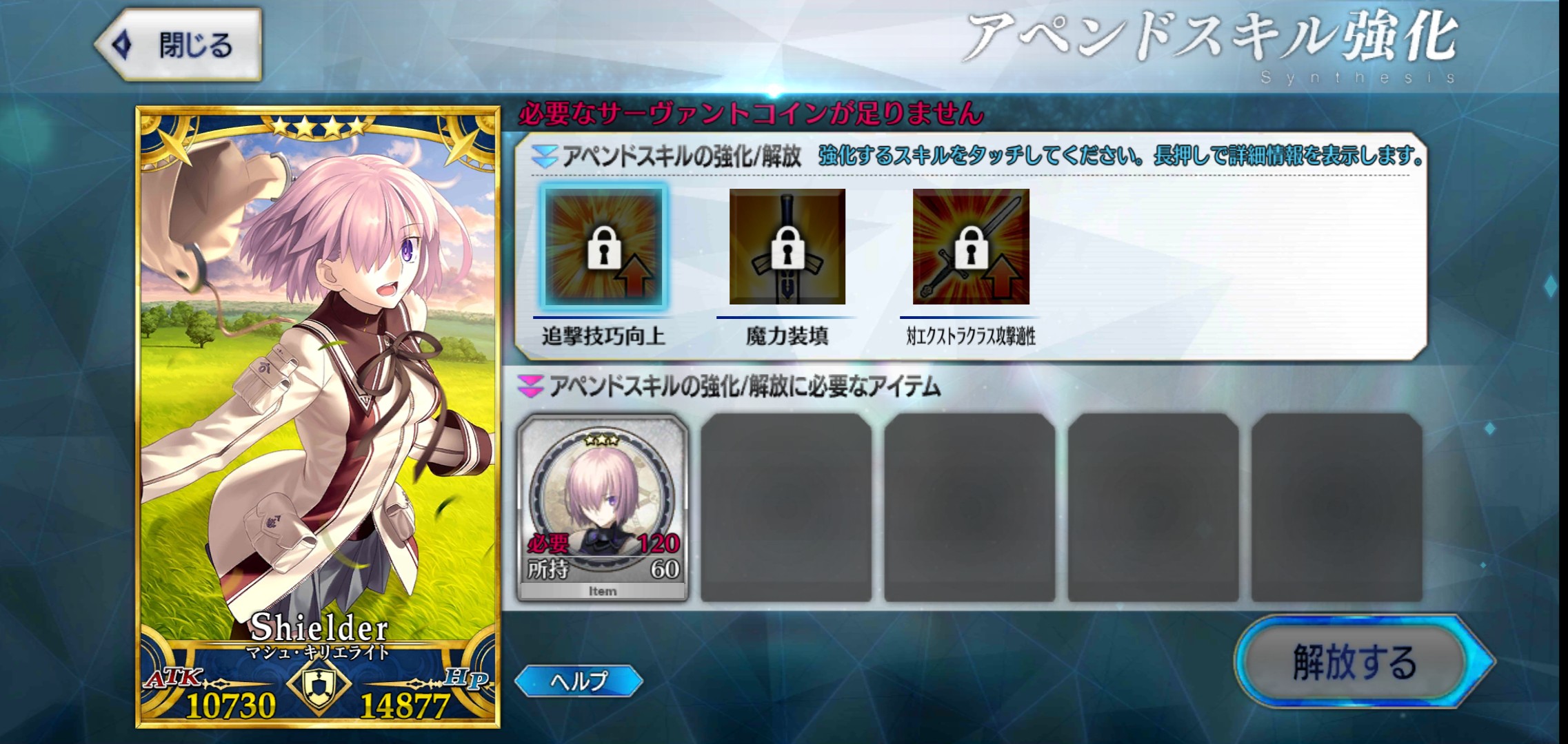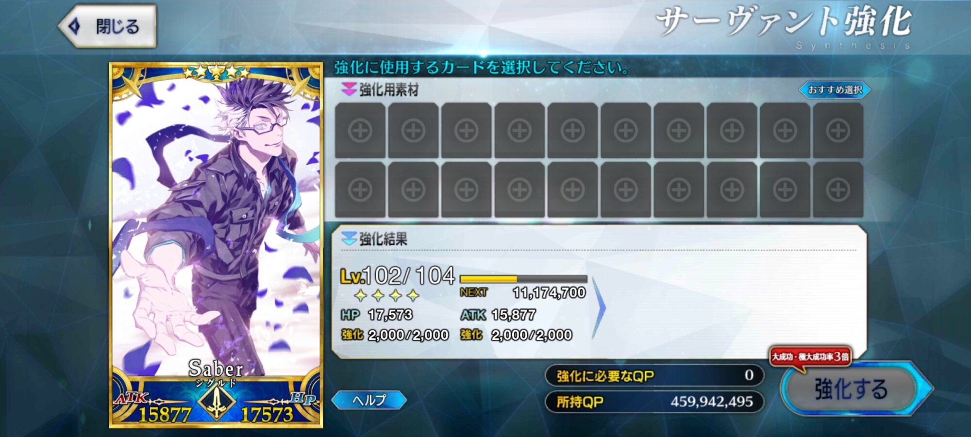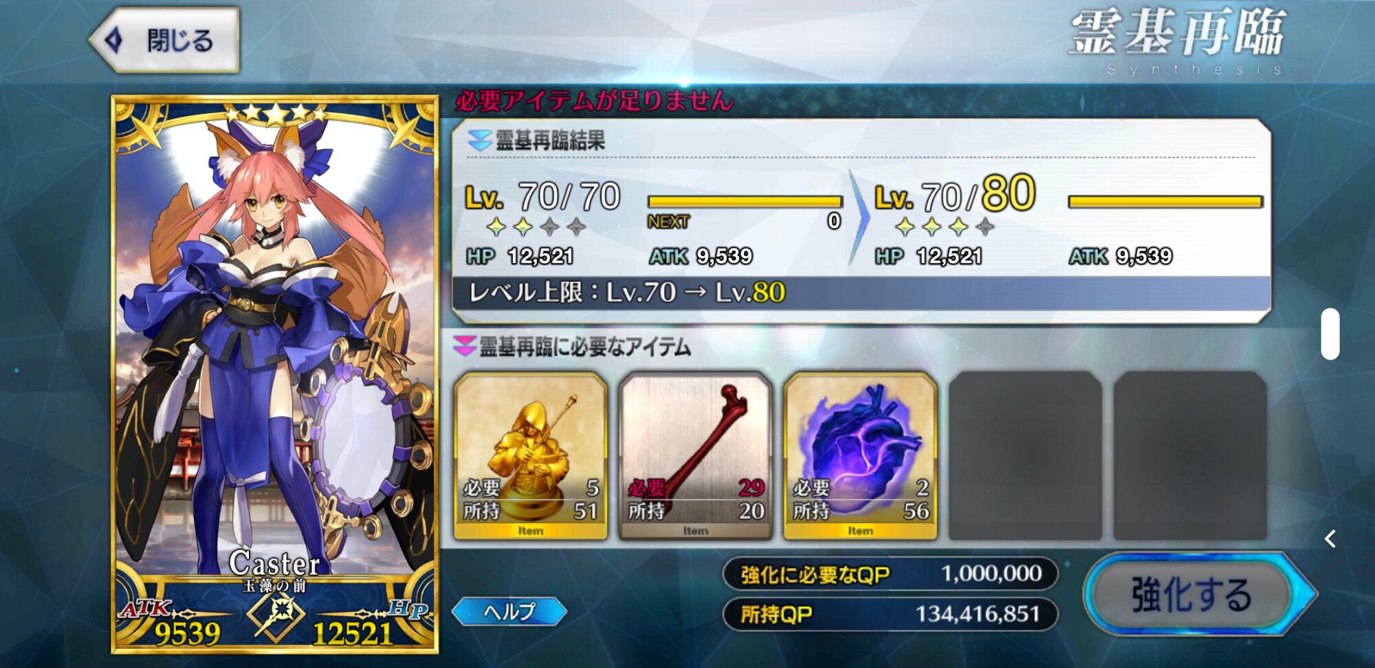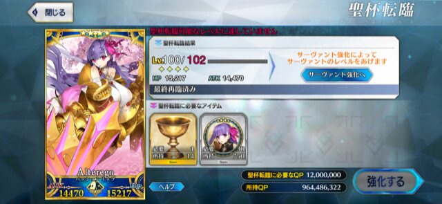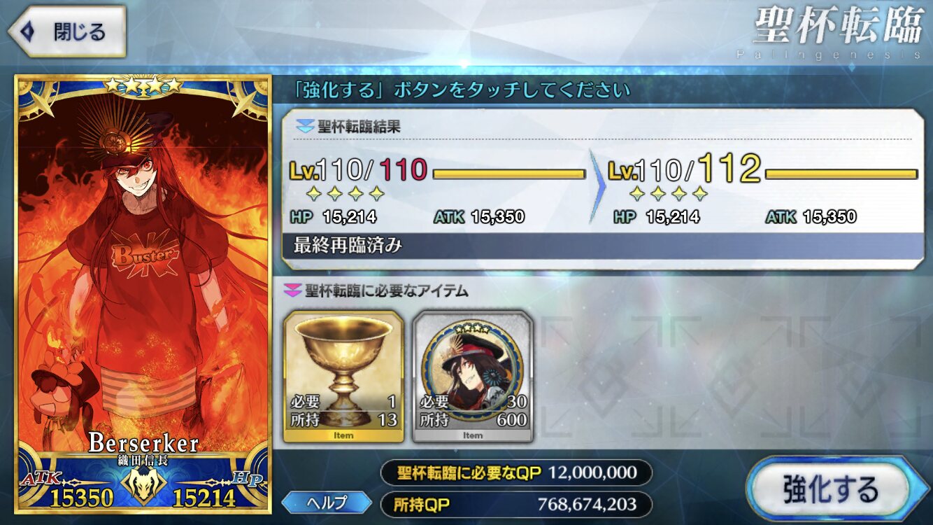 これは気長な育成になりそうな予感本音を言うとレベル上限突破に使う聖杯の必要数減らしてほしかったです!