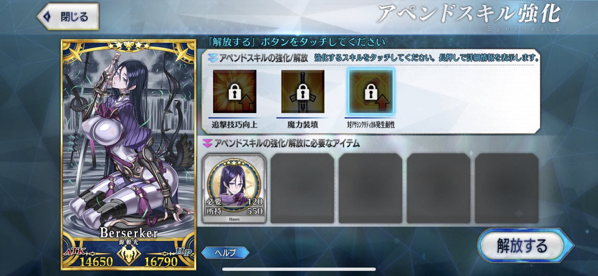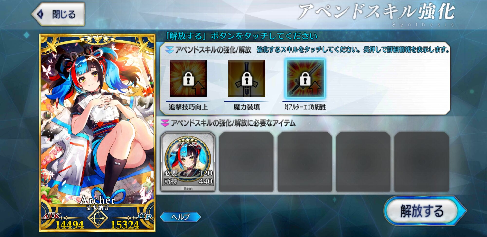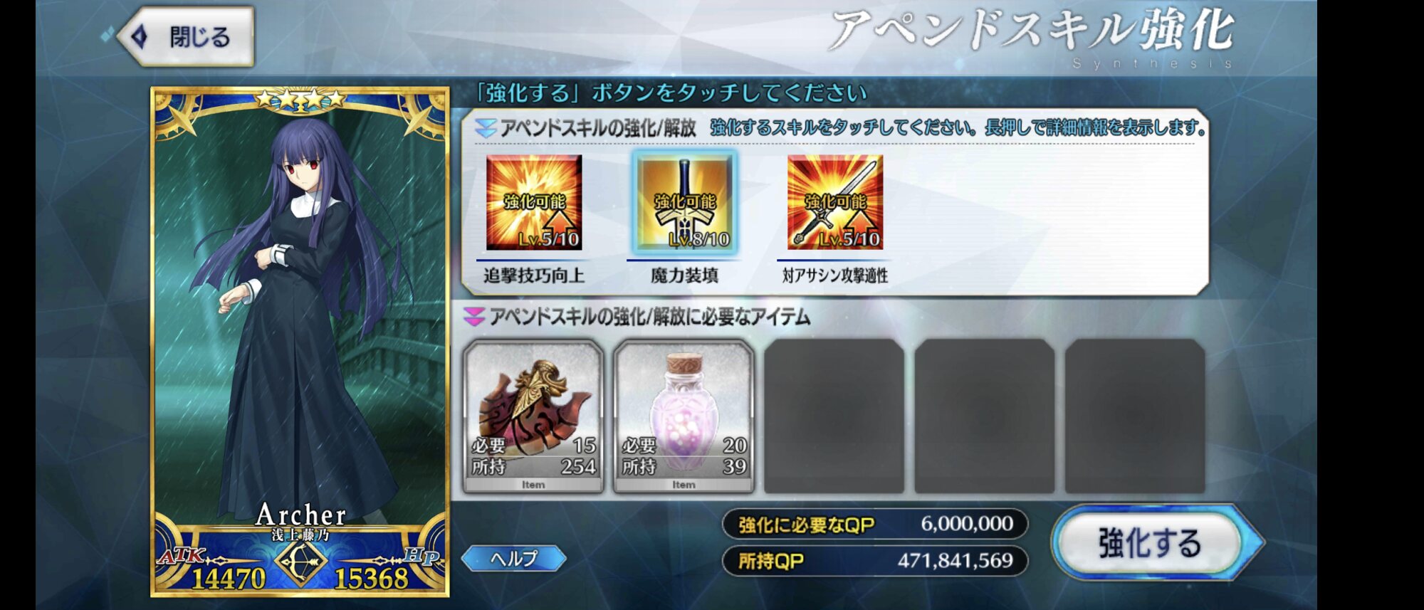 これは気長な育成になりそうな予感本音を言うとレベル上限突破に使う聖杯の必要数減らしてほしかったです!