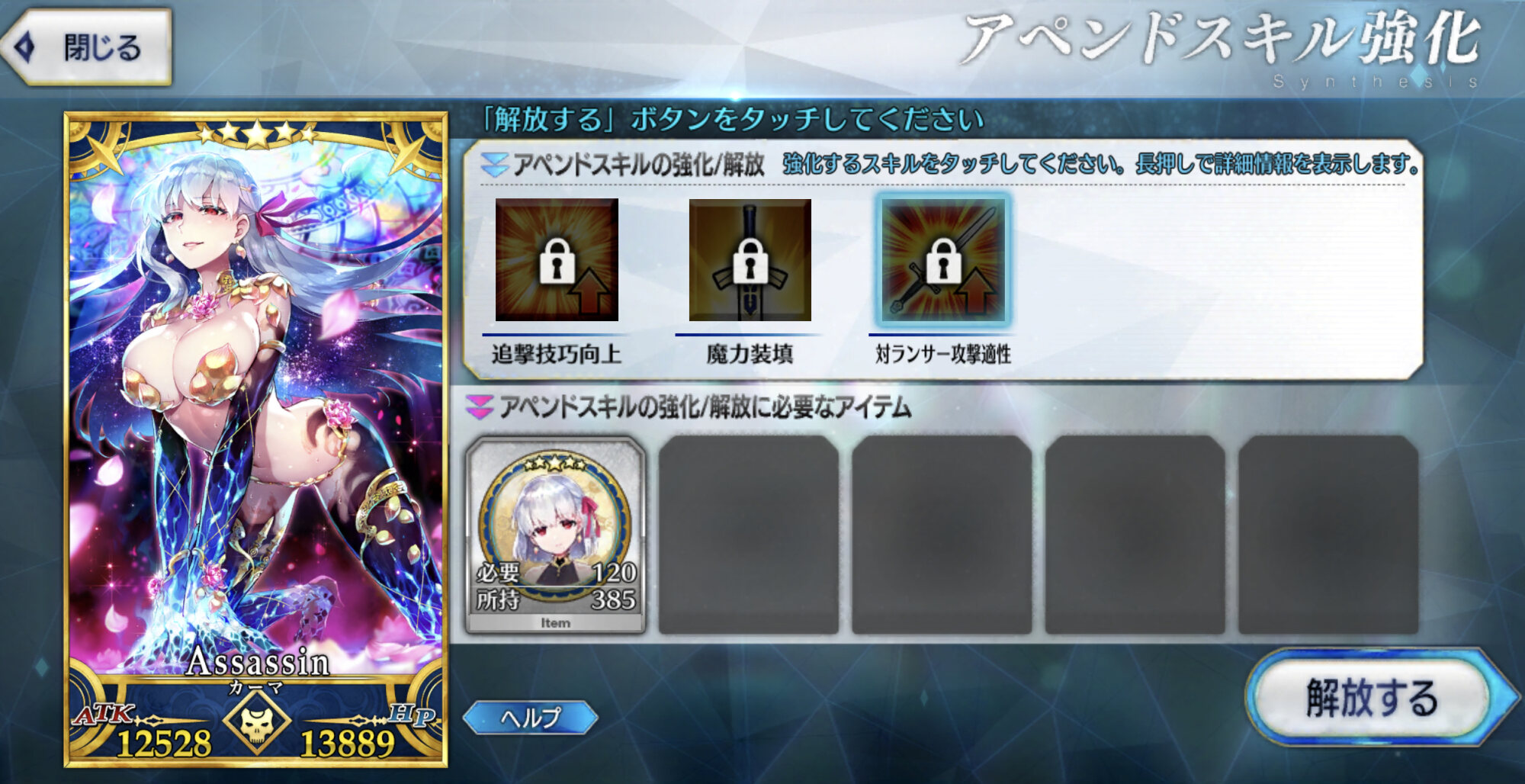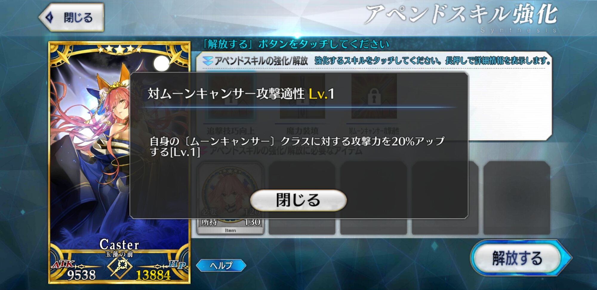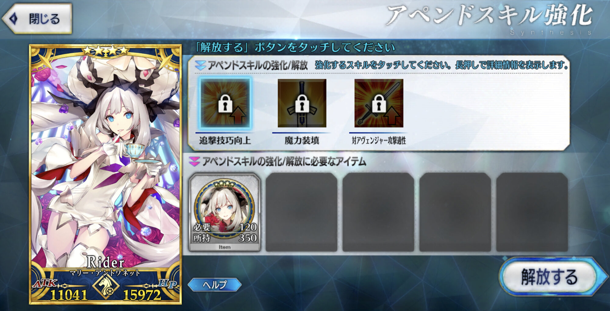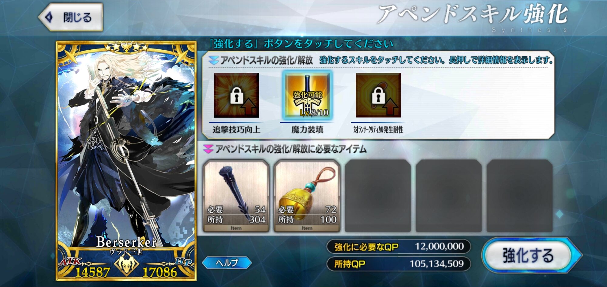 これは気長な育成になりそうな予感本音を言うとレベル上限突破に使う聖杯の必要数減らしてほしかったです!