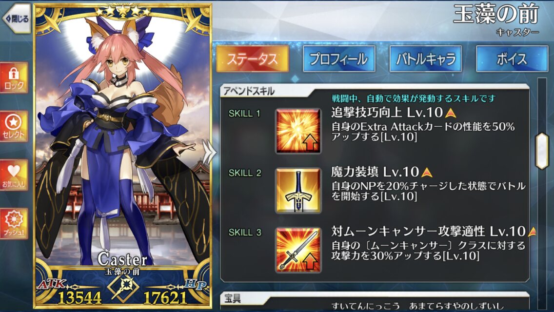 同じくチャー減持ちの玉藻は、NPチャージは無いが孔明には無い回復や超貴重なCT短縮まで持ってる>>79