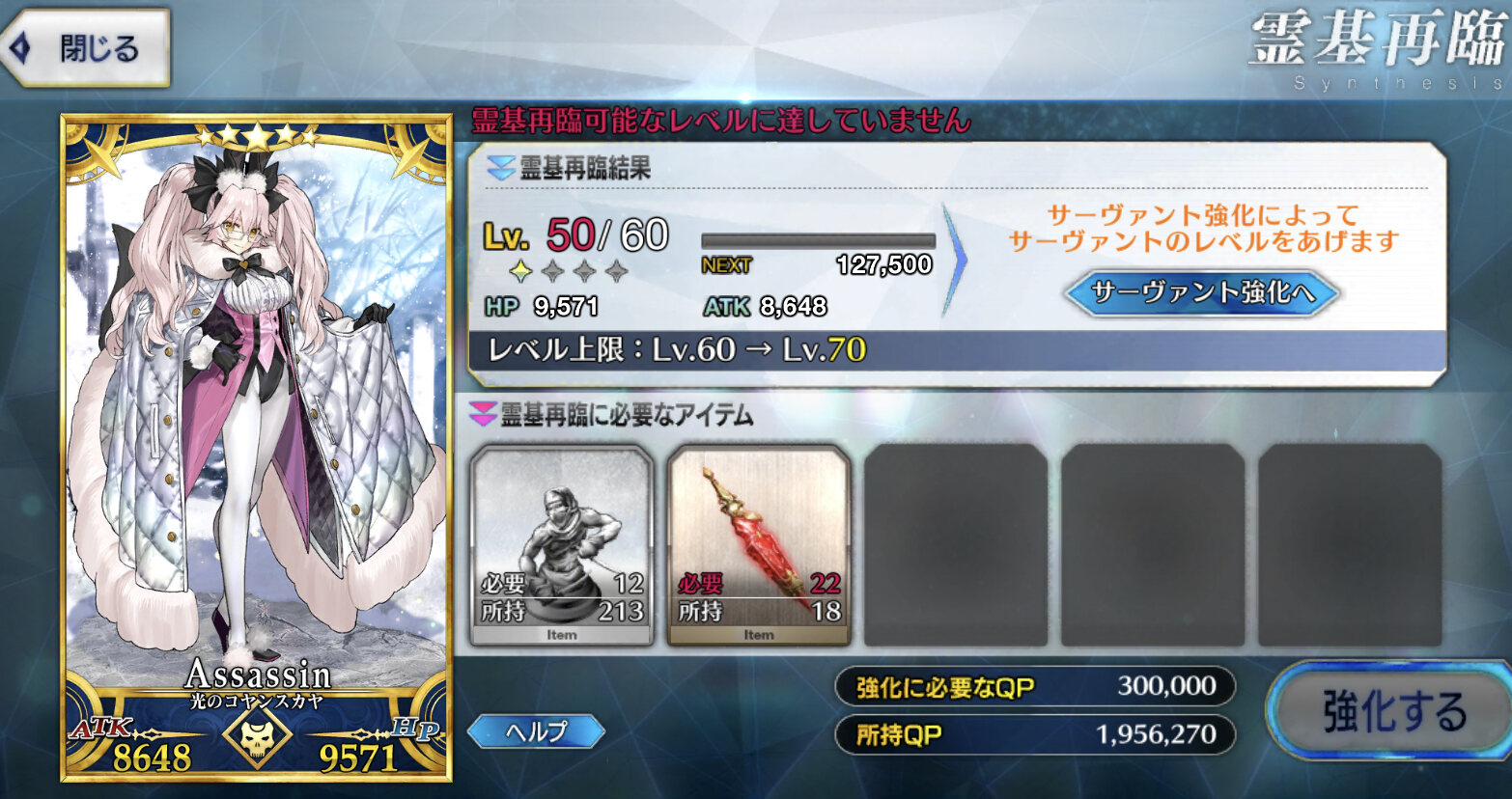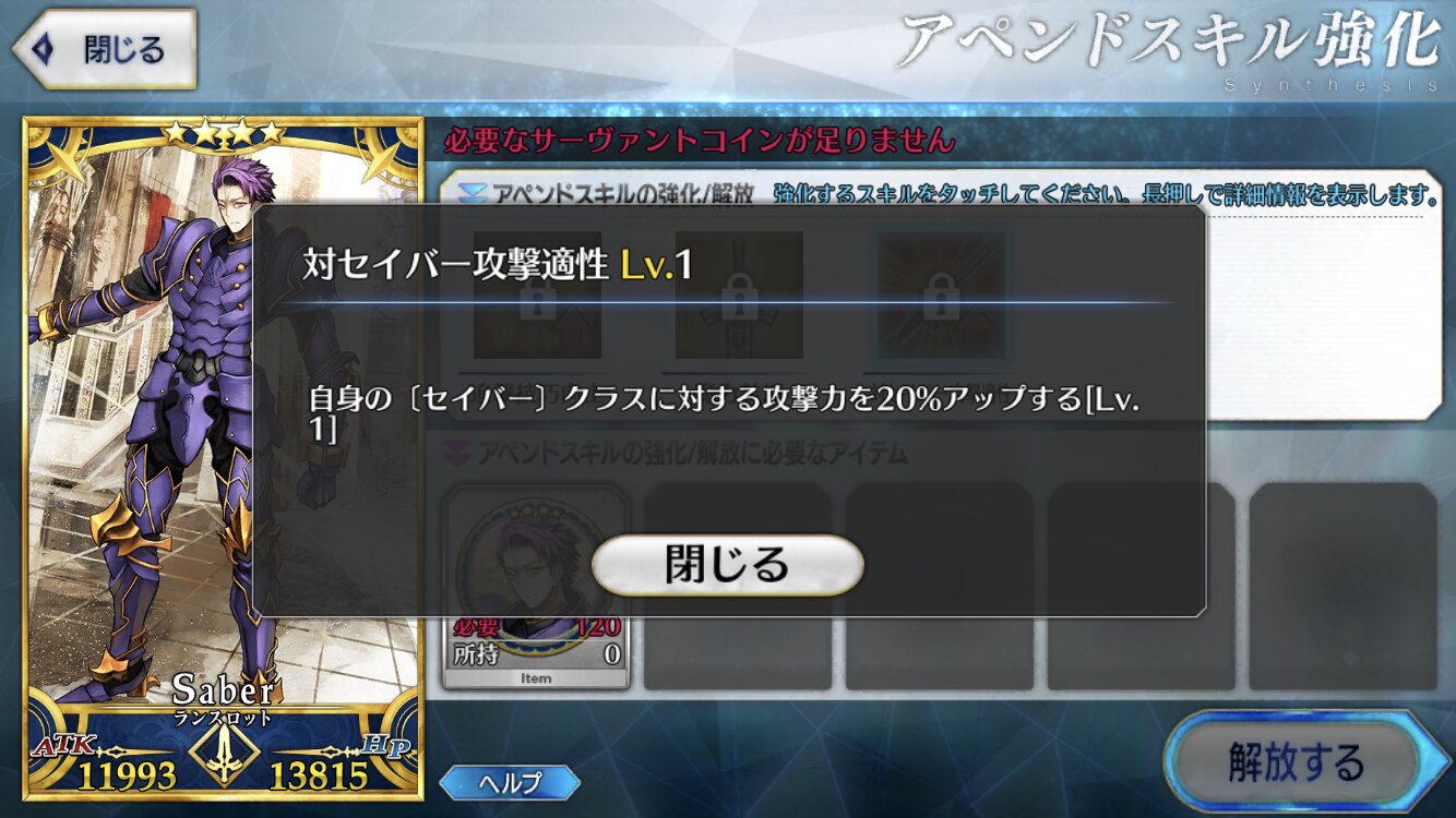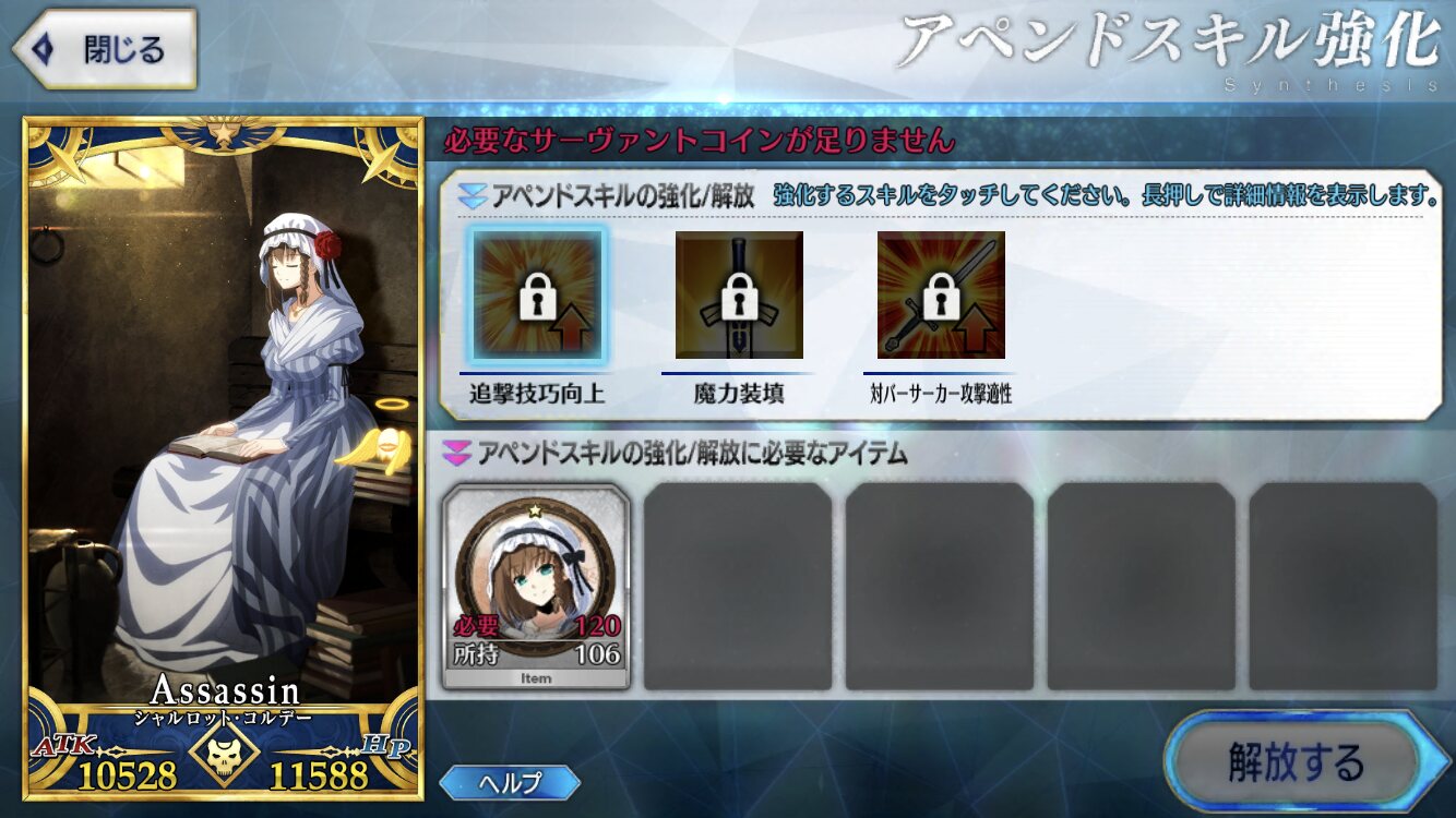 聖杯と素材あってもコインが圧倒的に足りないわ、フレポでコイン稼げないわだし。>>965