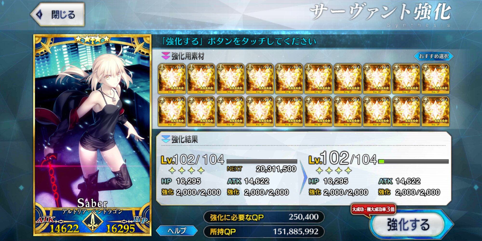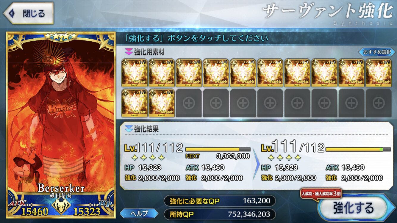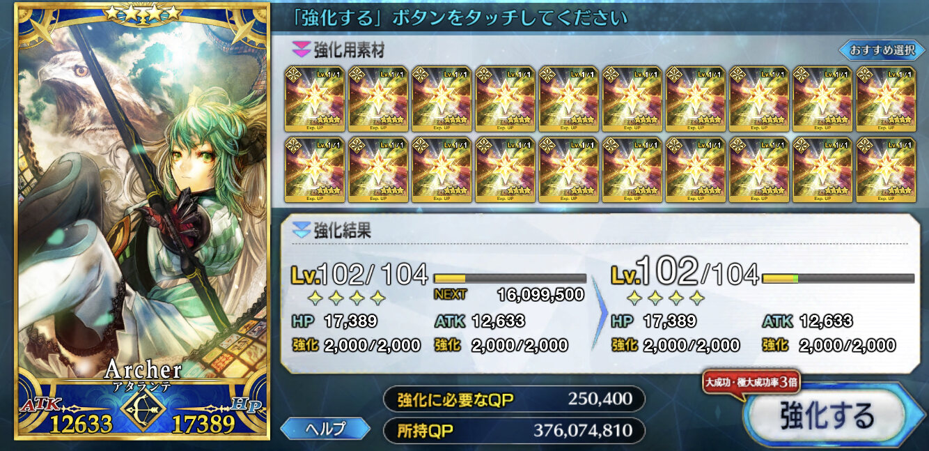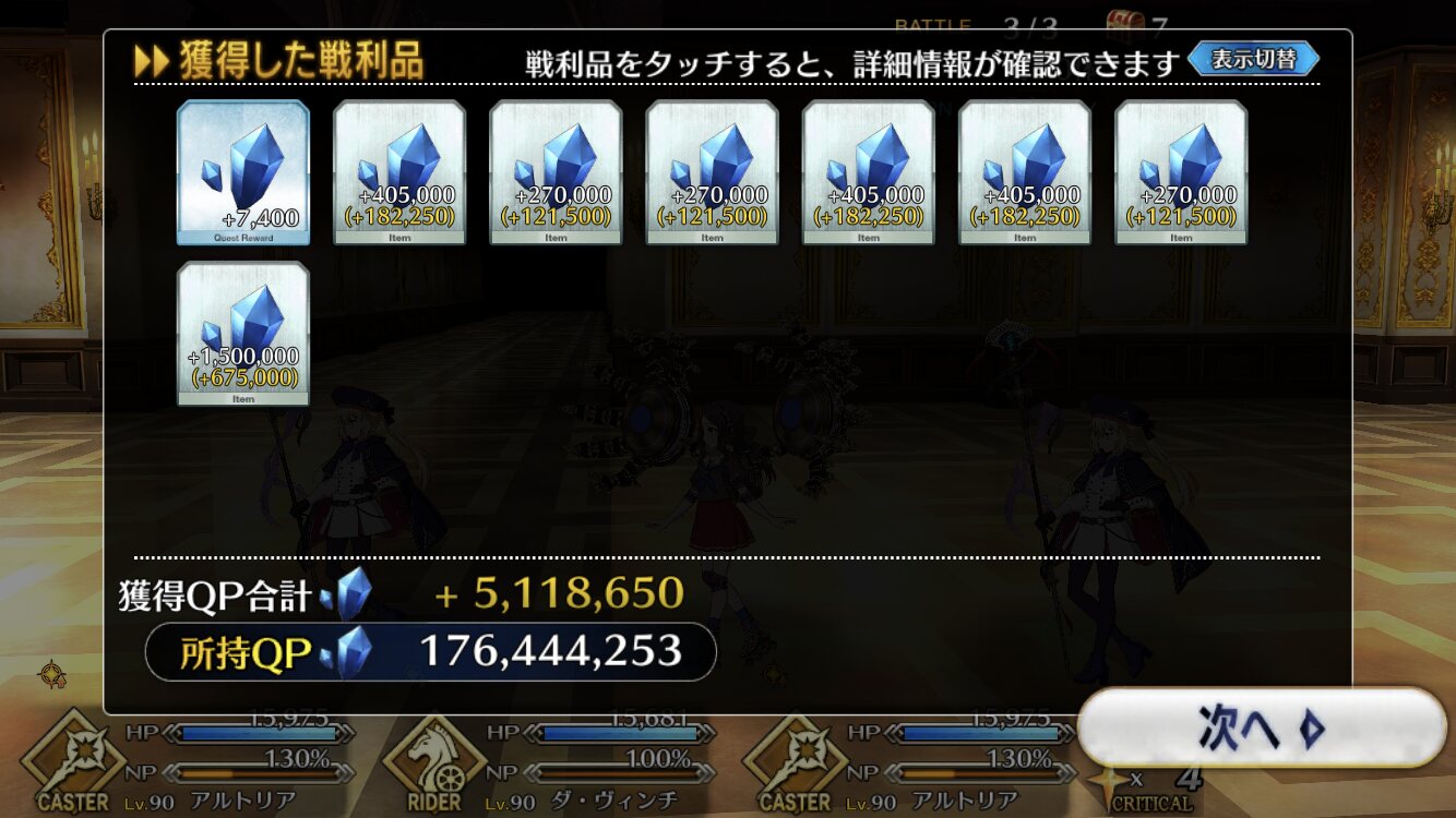 まぁそうなるかな。やっぱNP増加は正義よ。とりあえず、QPは牛若育ててれば3ターン周回やりやすいかな