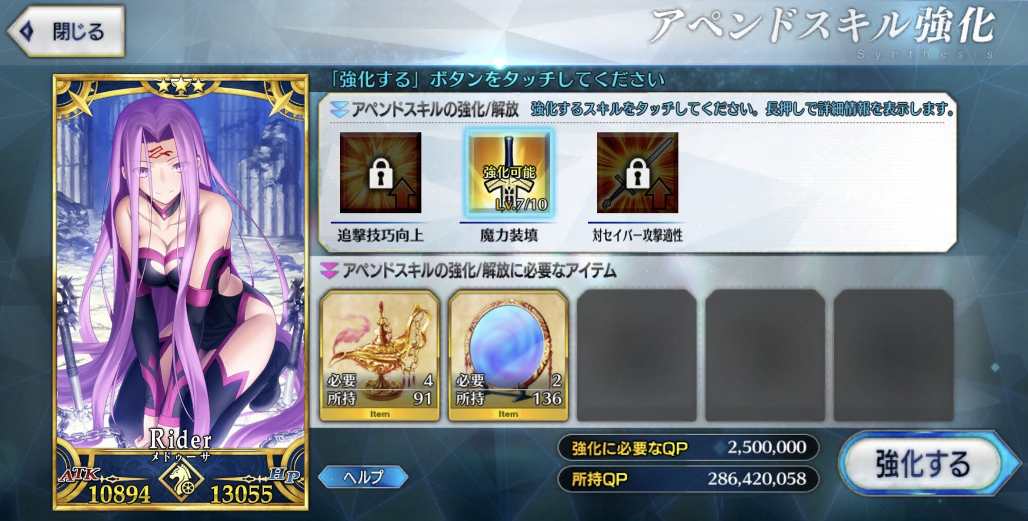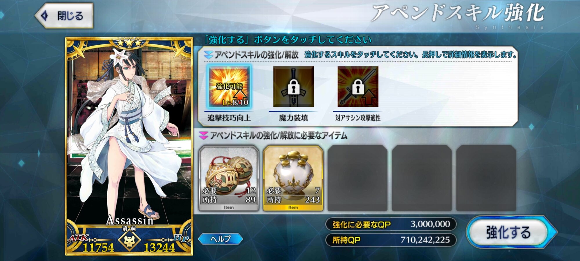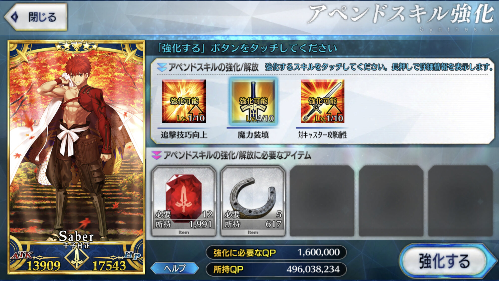 まぁそうなるかな。やっぱNP増加は正義よ。とりあえず、QPは牛若育ててれば3ターン周回やりやすいかな
