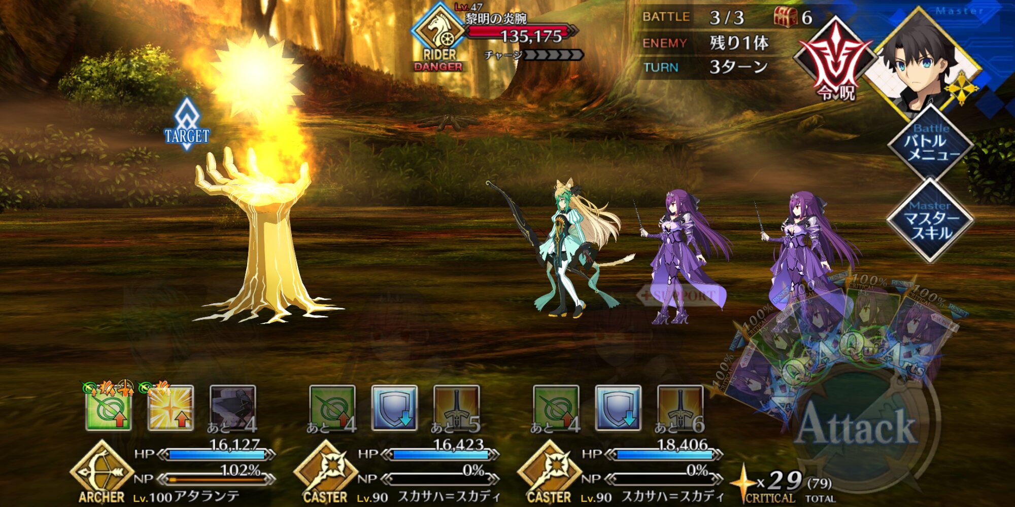 →3waveでnpチャージスキルを再使用!宝具をまた打てる!