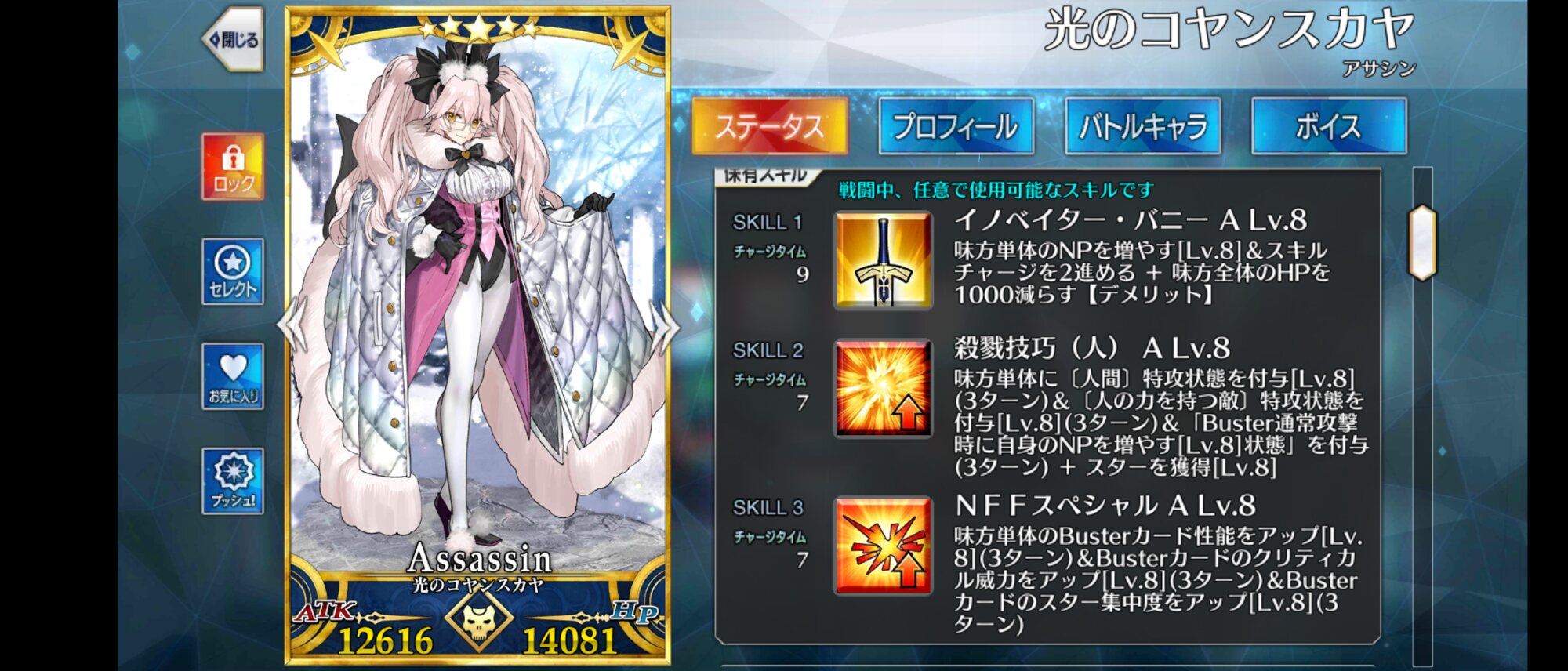 →コヤスのスキルをnpチャージ持ちバスターアタッカーに付与