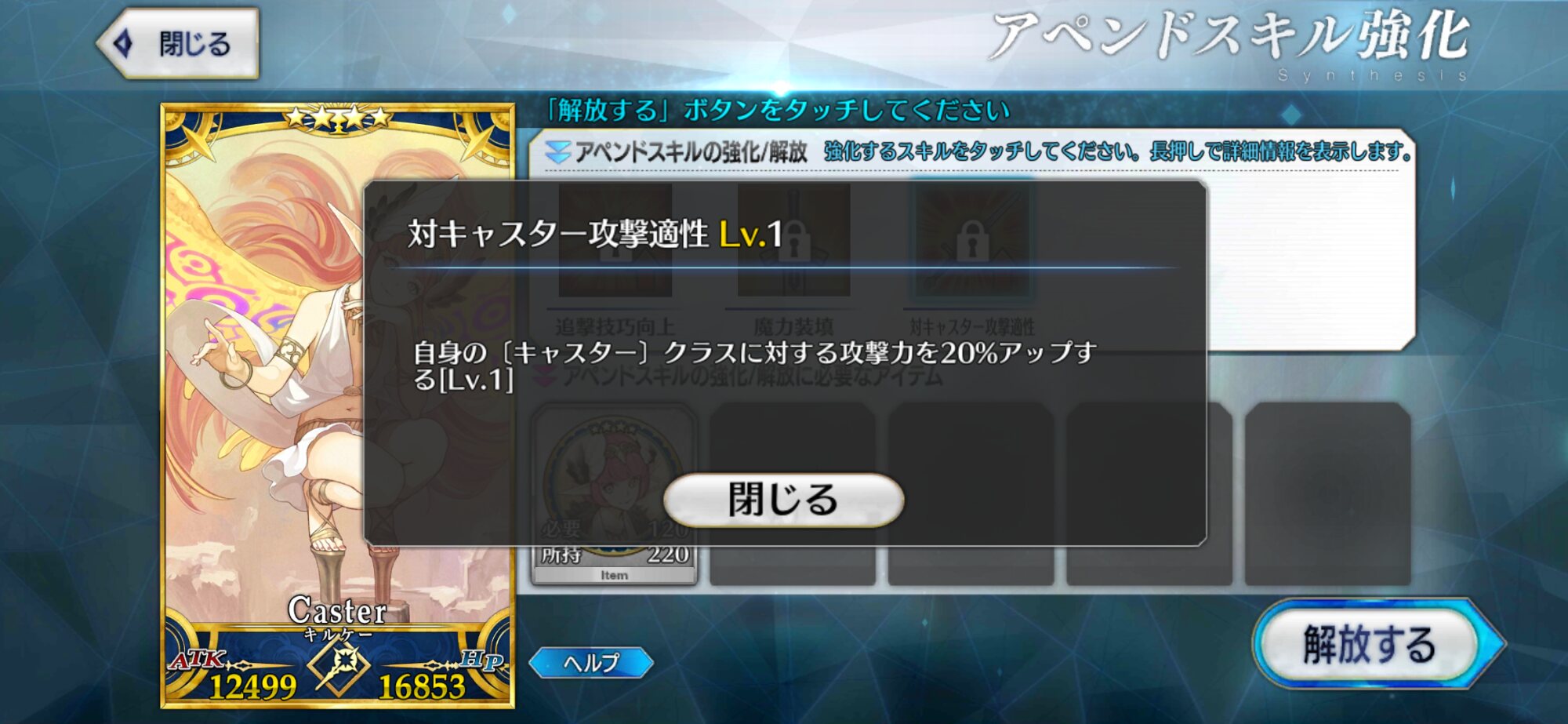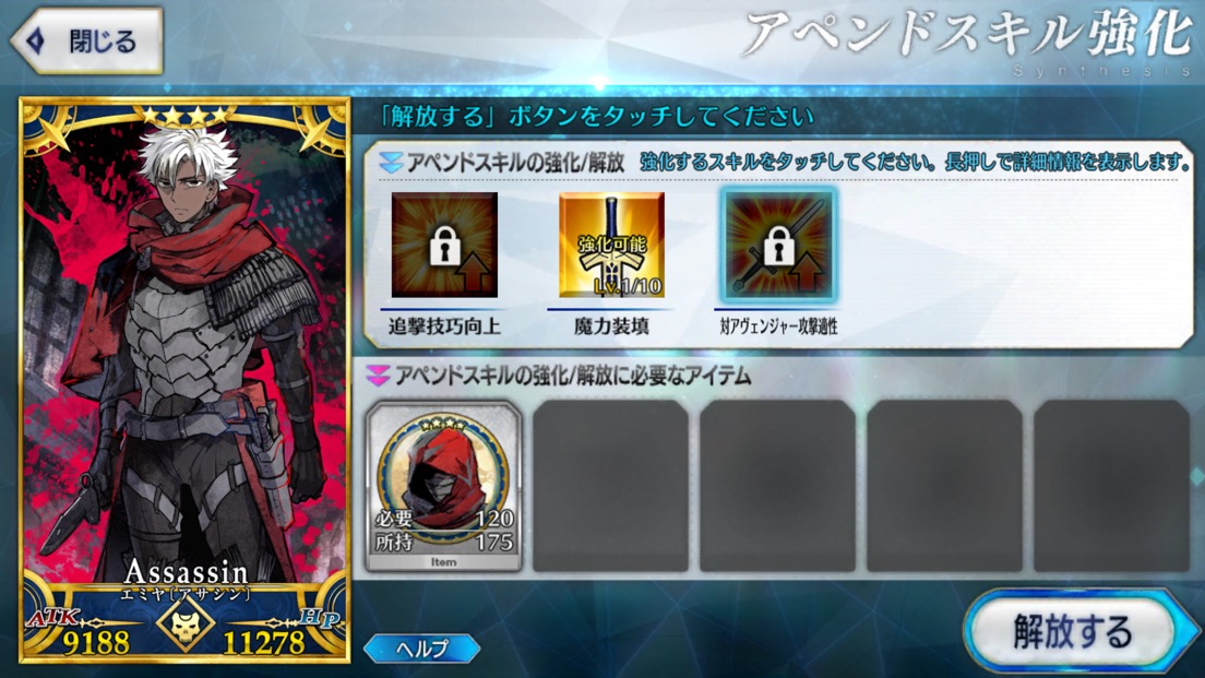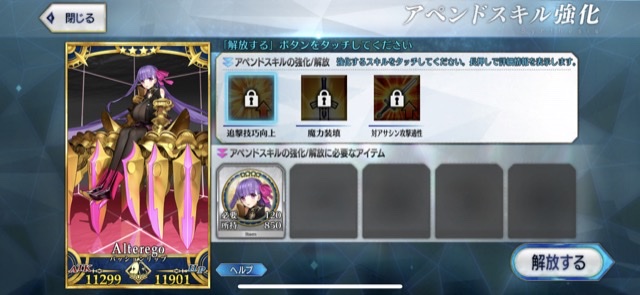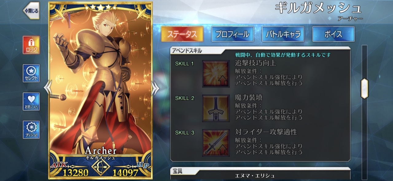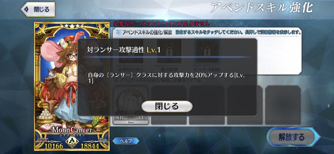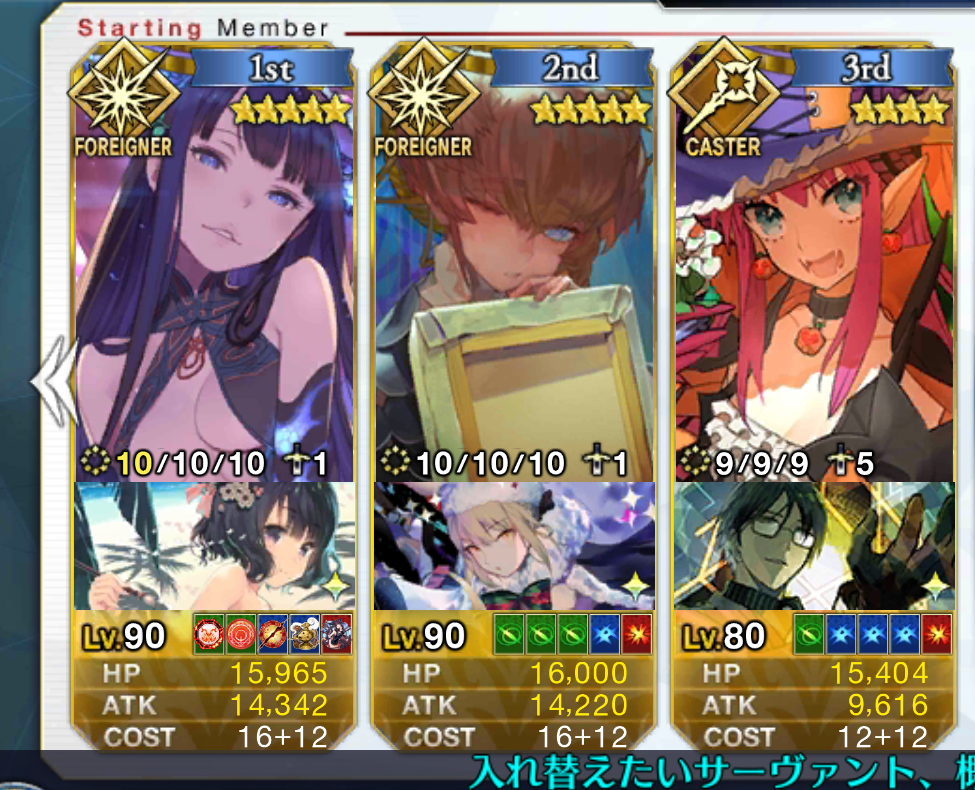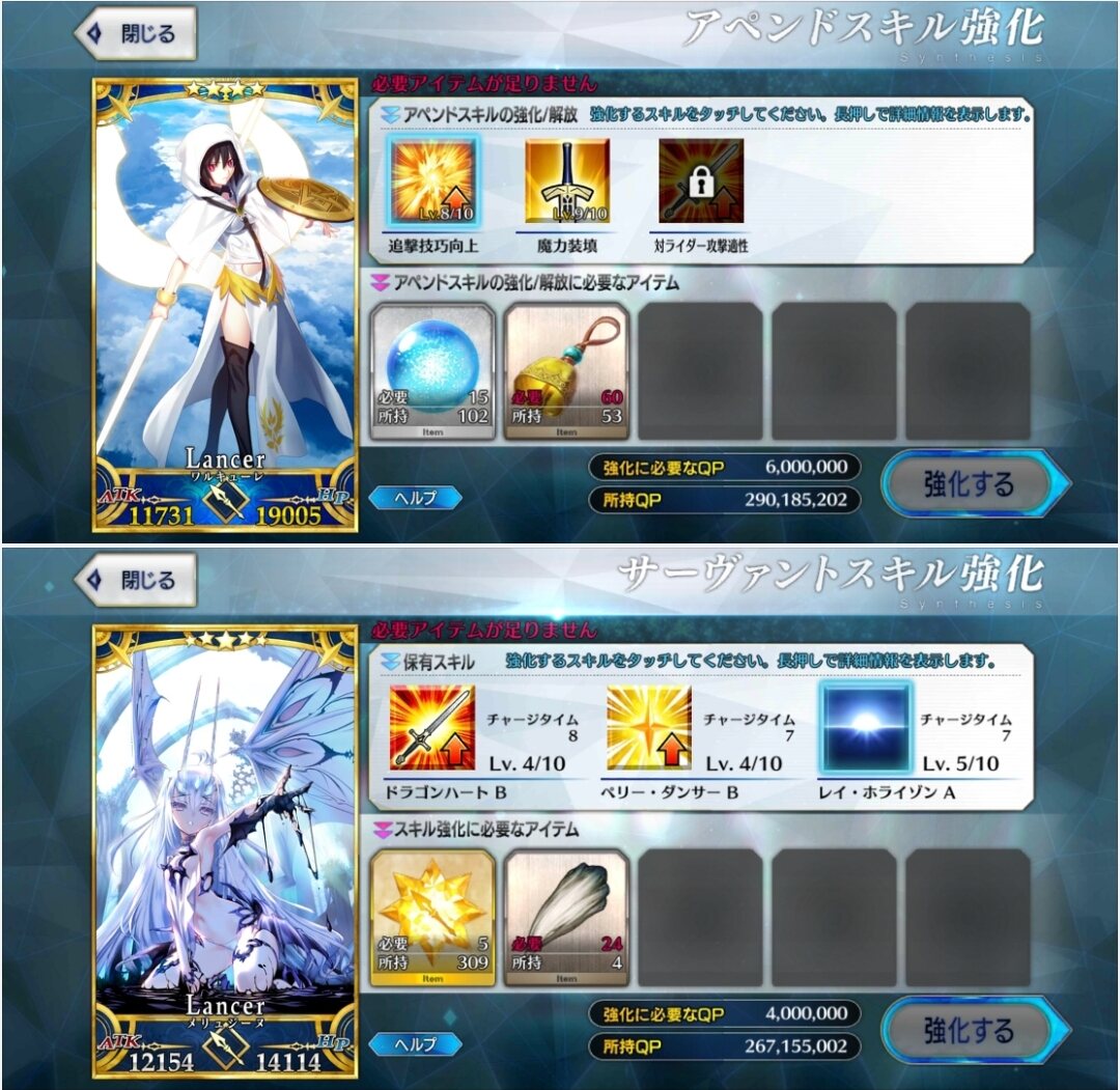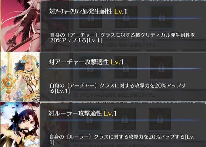 ごめん、戴冠式にはいけません。今ノリッジにいます。この街の厄災を予言の子と共に止める仕事をしています。......本当は、六章考察スレが恋しいけれど、でも今はもう少しだけ知らないふりをします。私の自前のキャストリアも、きっといつか絆10になって過労死してるハズだから...!っていう冗談はさておき、この進行度マークのギチギチ具合を見てたまげたんですよね。こりゃあ戴冠式にも誕生日にも間に合いそうにねぇぜ!ついで感覚でオベロンとか実装された日にゃあたしゃもう爆発四散しそうだよ...(まる子)ところでアペンドスキルの件ですが、EXアタック強化はSイシュタルに使うと強そうですな。他にはエクストラクラスなら三枠目の特定クラス特効が活きるかな?といった感じです!今週夜勤だから今まで以上にストーリー進まなさそう(白目)!!>>910