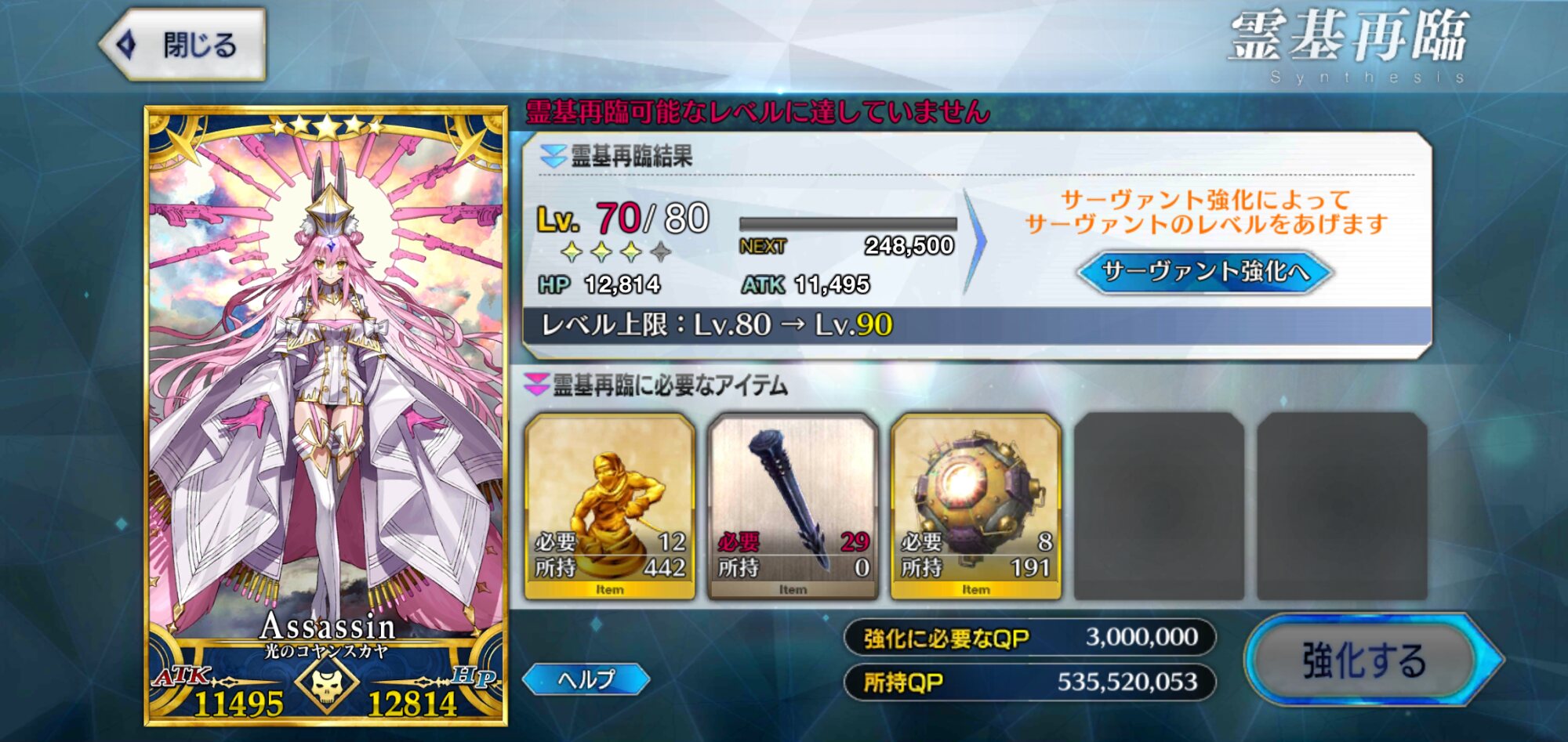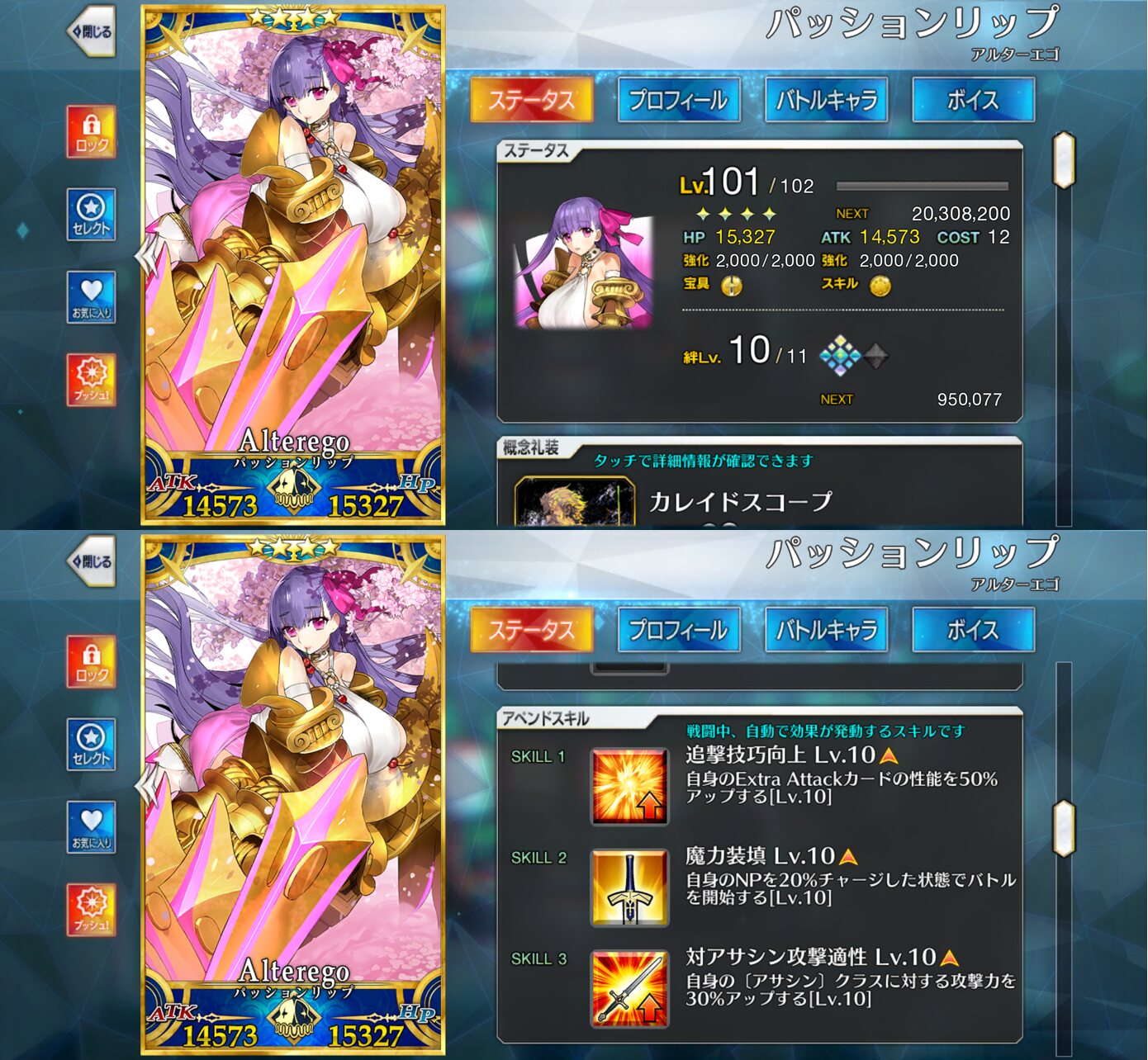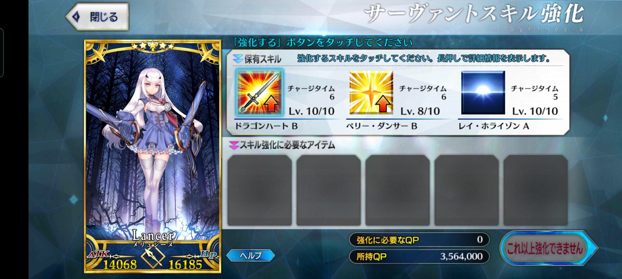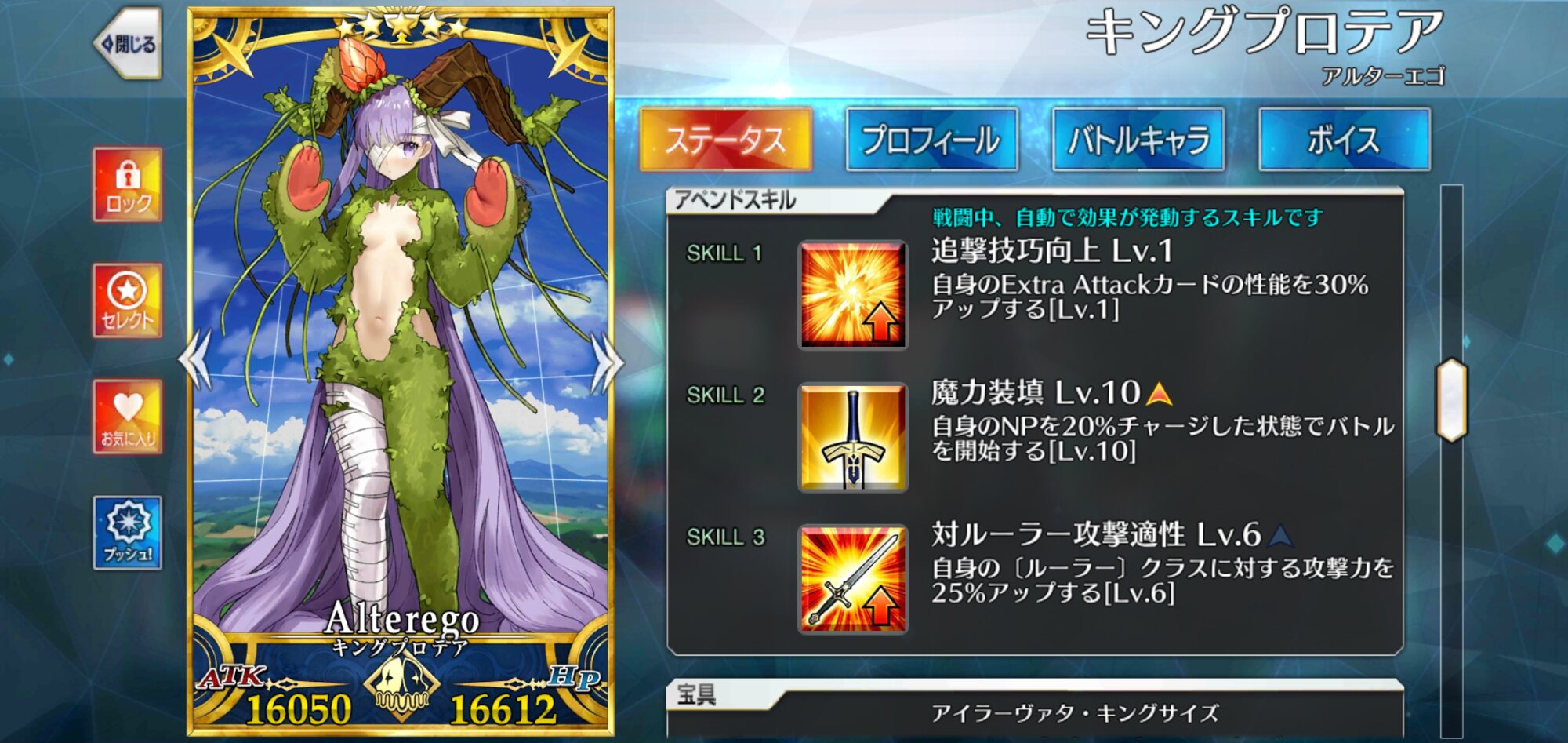 ごめん、戴冠式にはいけません。今ノリッジにいます。この街の厄災を予言の子と共に止める仕事をしています。......本当は、六章考察スレが恋しいけれど、でも今はもう少しだけ知らないふりをします。私の自前のキャストリアも、きっといつか絆10になって過労死してるハズだから...!っていう冗談はさておき、この進行度マークのギチギチ具合を見てたまげたんですよね。こりゃあ戴冠式にも誕生日にも間に合いそうにねぇぜ!ついで感覚でオベロンとか実装された日にゃあたしゃもう爆発四散しそうだよ...(まる子)ところでアペンドスキルの件ですが、EXアタック強化はSイシュタルに使うと強そうですな。他にはエクストラクラスなら三枠目の特定クラス特効が活きるかな?といった感じです!今週夜勤だから今まで以上にストーリー進まなさそう(白目)!!>>910