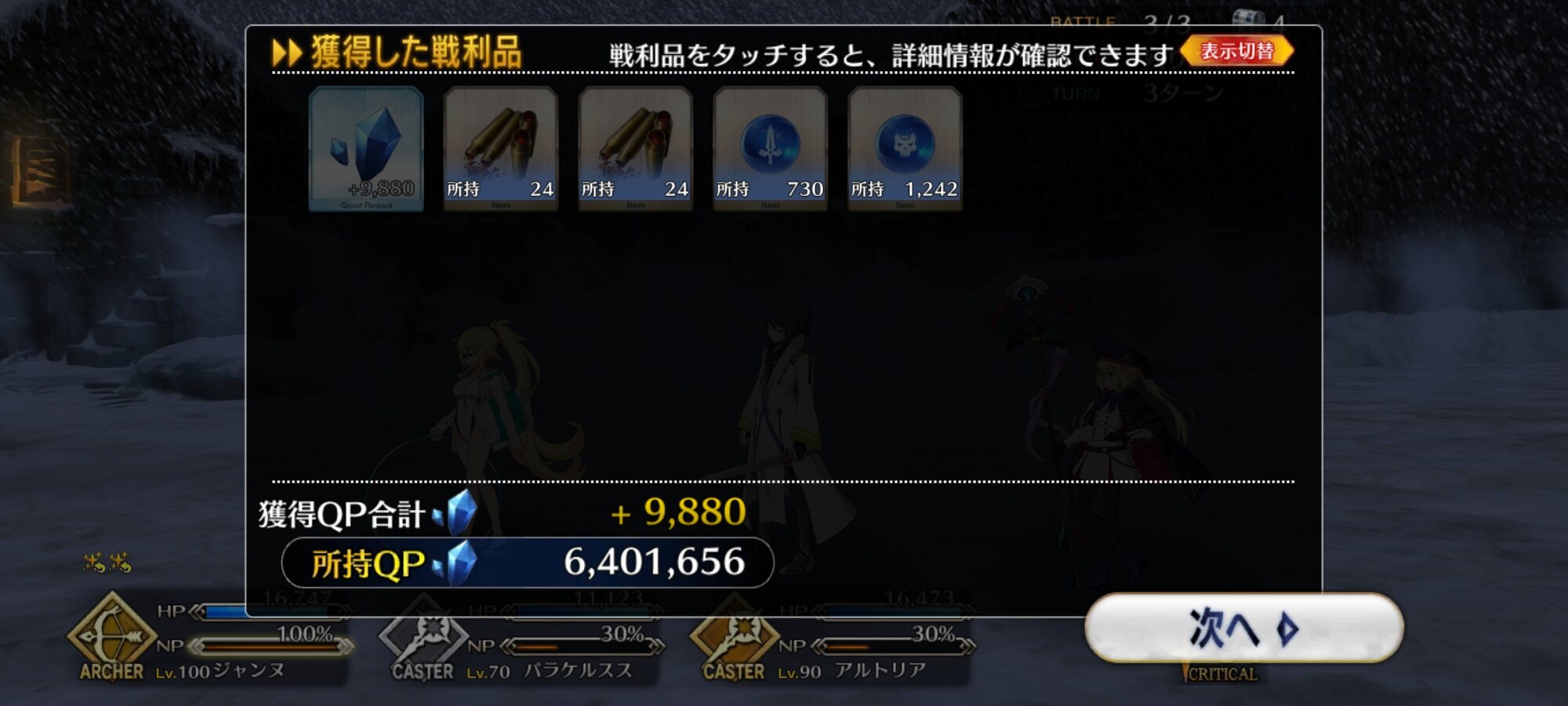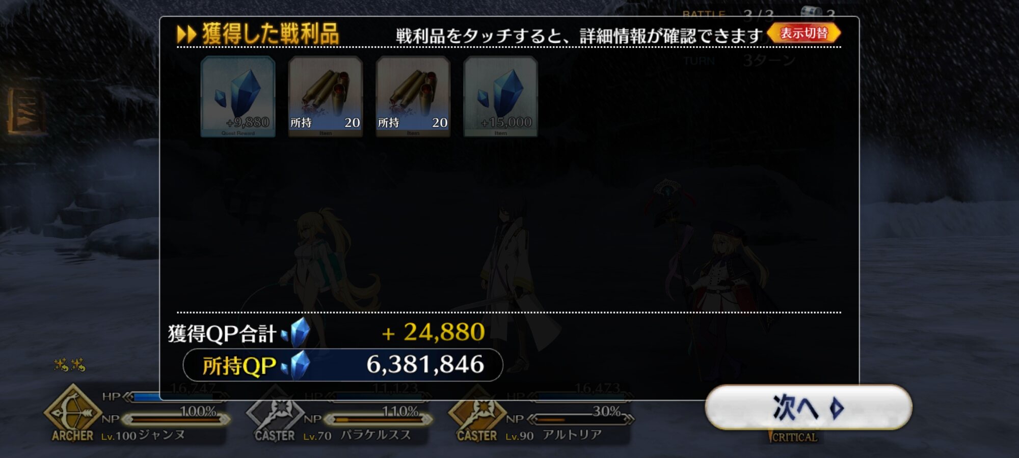 良いよねー、自分も極級の3wave目を水着ノッブに勤めて貰ってる>>45