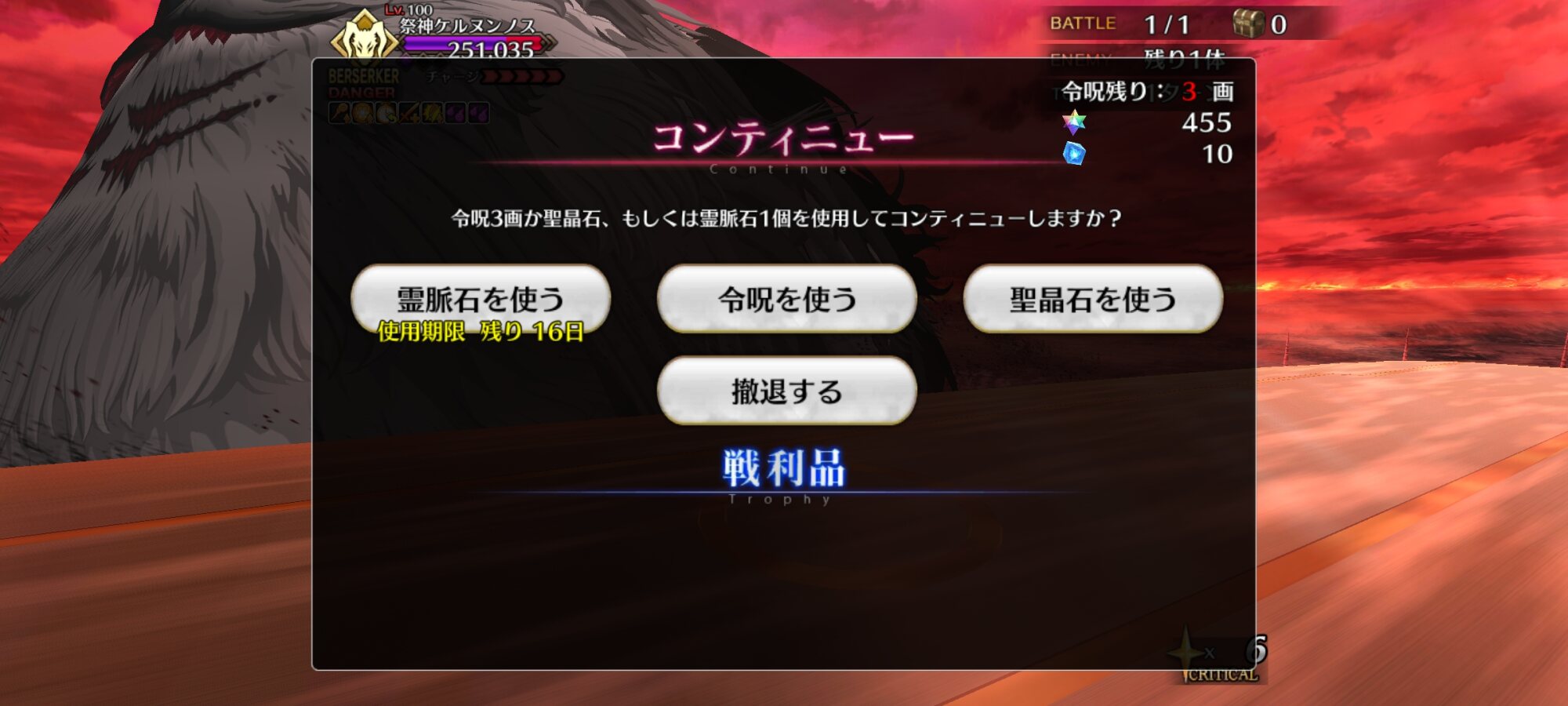虚数潜航では危なかったけど令呪で助けて貰ったので無事