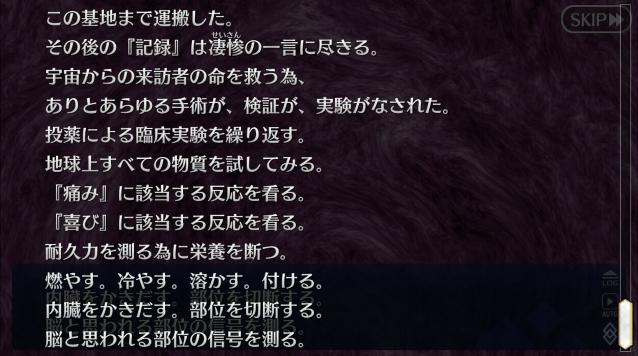 中々エゲツない音が出ていたから(グチャァ、みたいな)検体Eの実験と何か関連がありそうな気はする。>>967