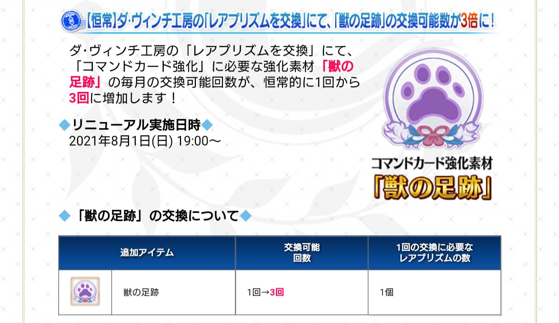 機会増やすよと言った後でのレアプリズム交換実装だからアレで一応音沙汰なんでない?コインもだけど