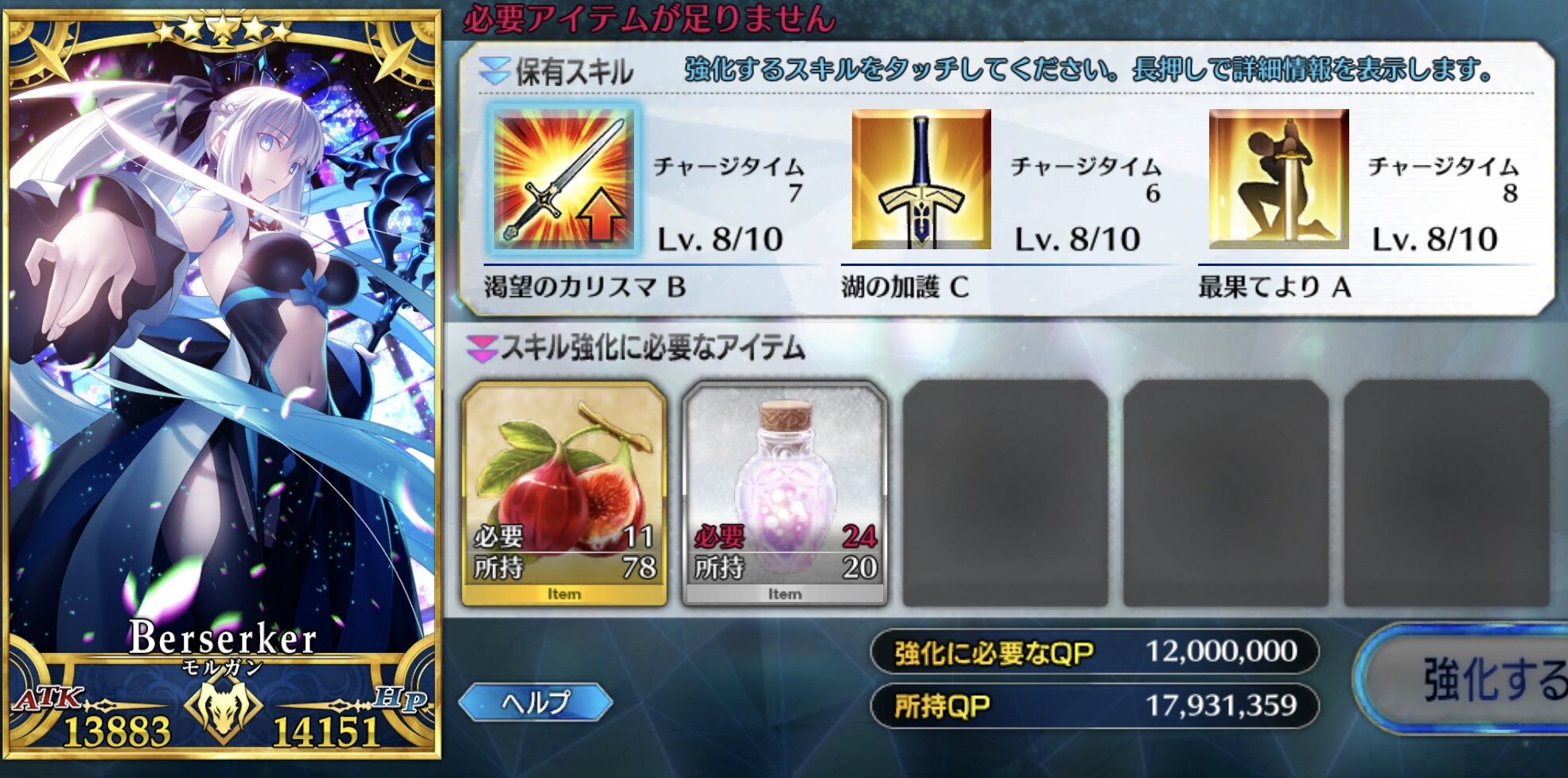 ブリテンダーはなんかほらあれだよぼいぼいを120レベにしたくて色々準備してたけど宝具1じゃ絆15にしてもコインが足りないことに気づいた