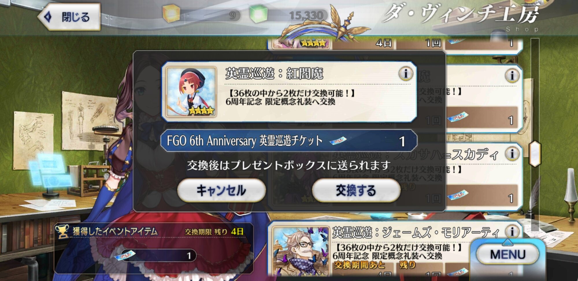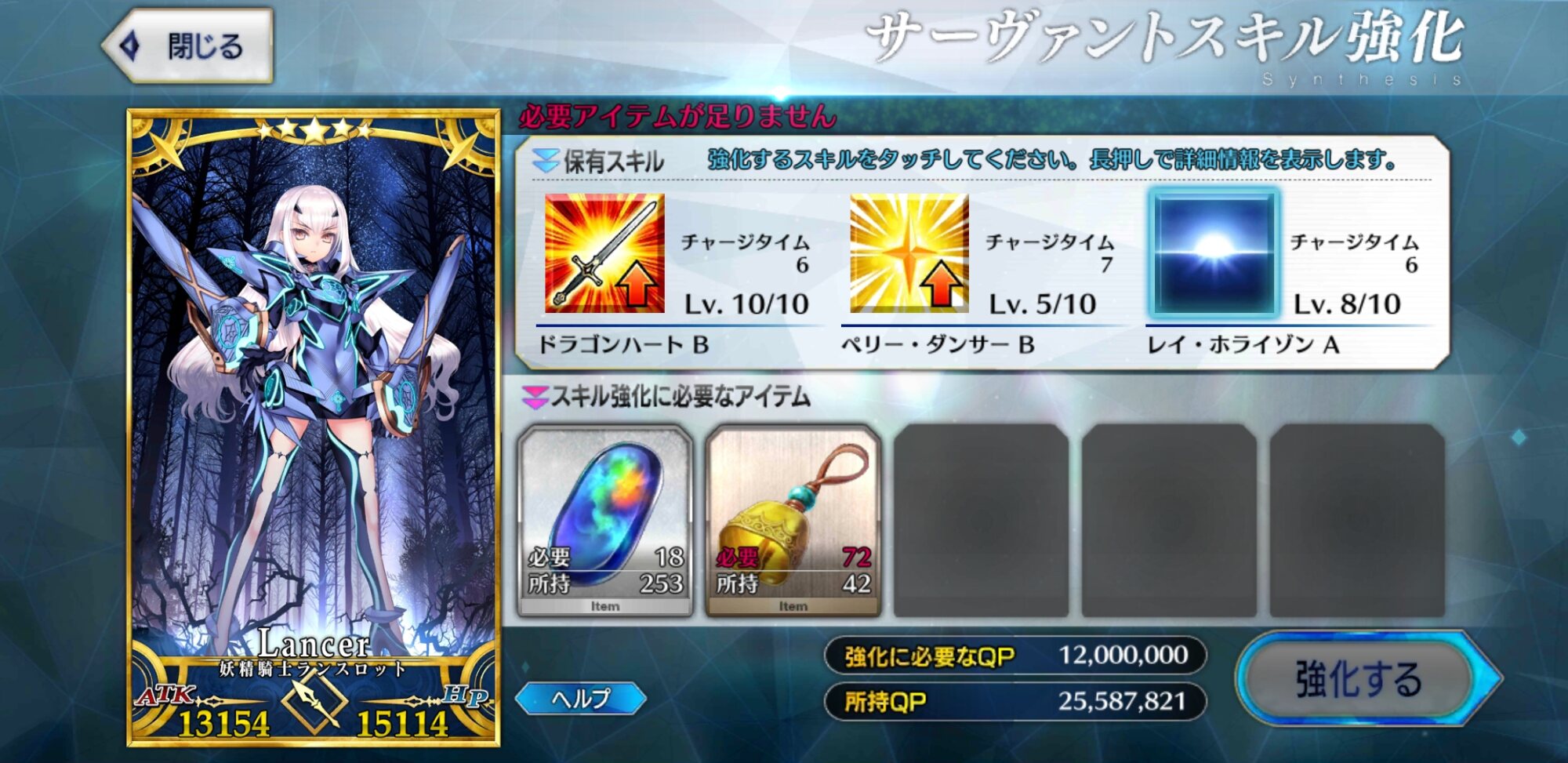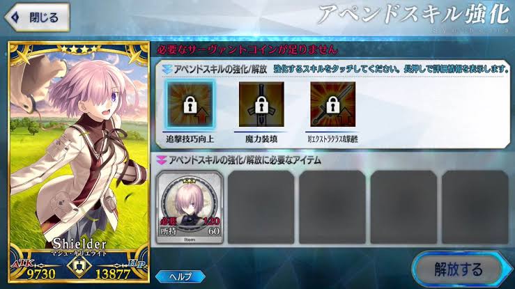 章クリアボーナスとかログボとかで貰えてたから、オベロンとランスロットの二人分を100個程度ドロップすればいいだけだよ