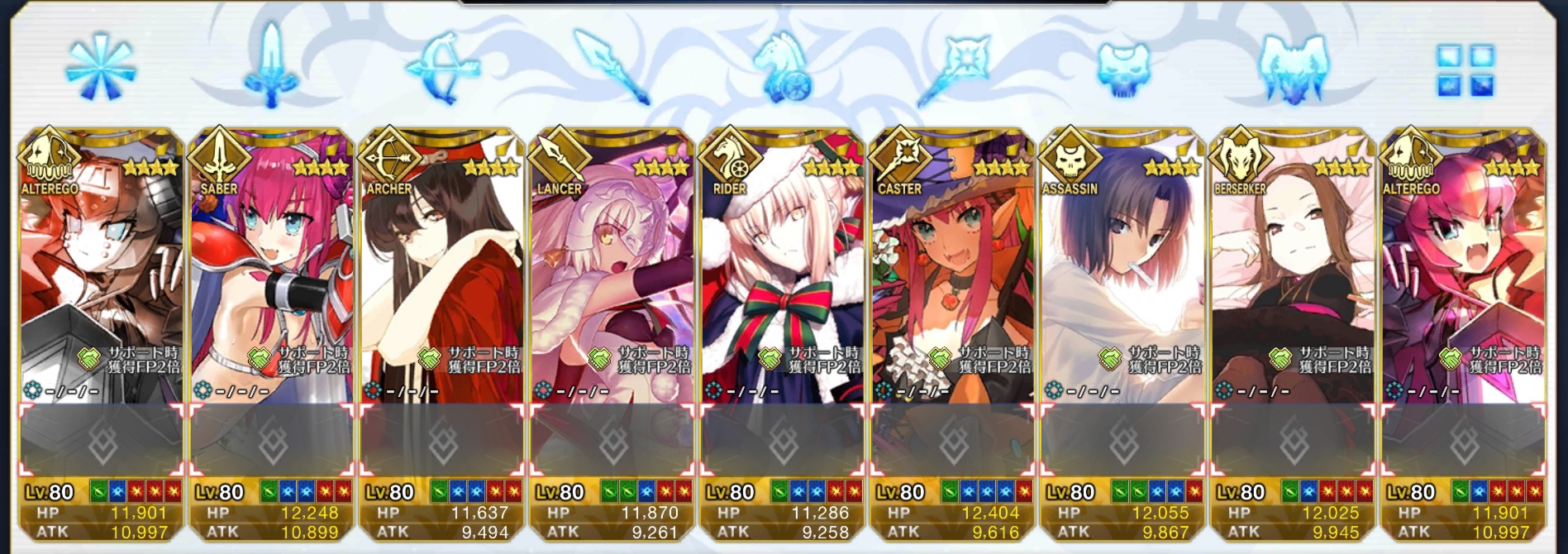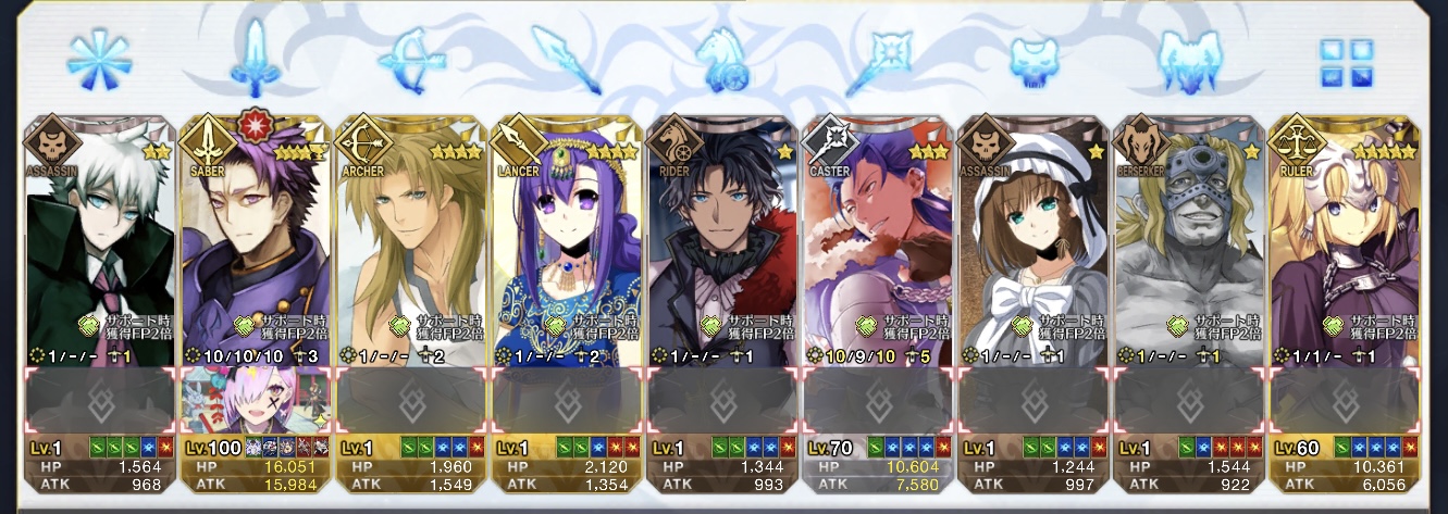 まず初めに霊基一覧の一番左上にサーヴァントがいないことを確認する。