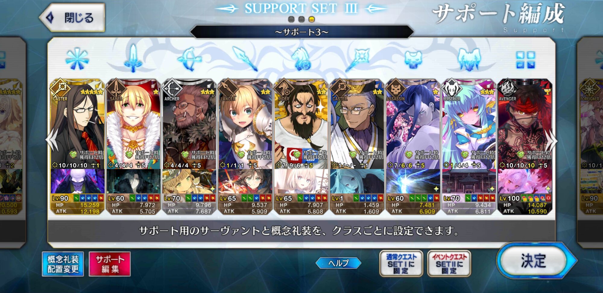 キャストリアとトリ子は福袋(課金)でそれ以外はログインで手に入ったスタートダッシュキャンペーンの石と呼符で来た。(無課金)