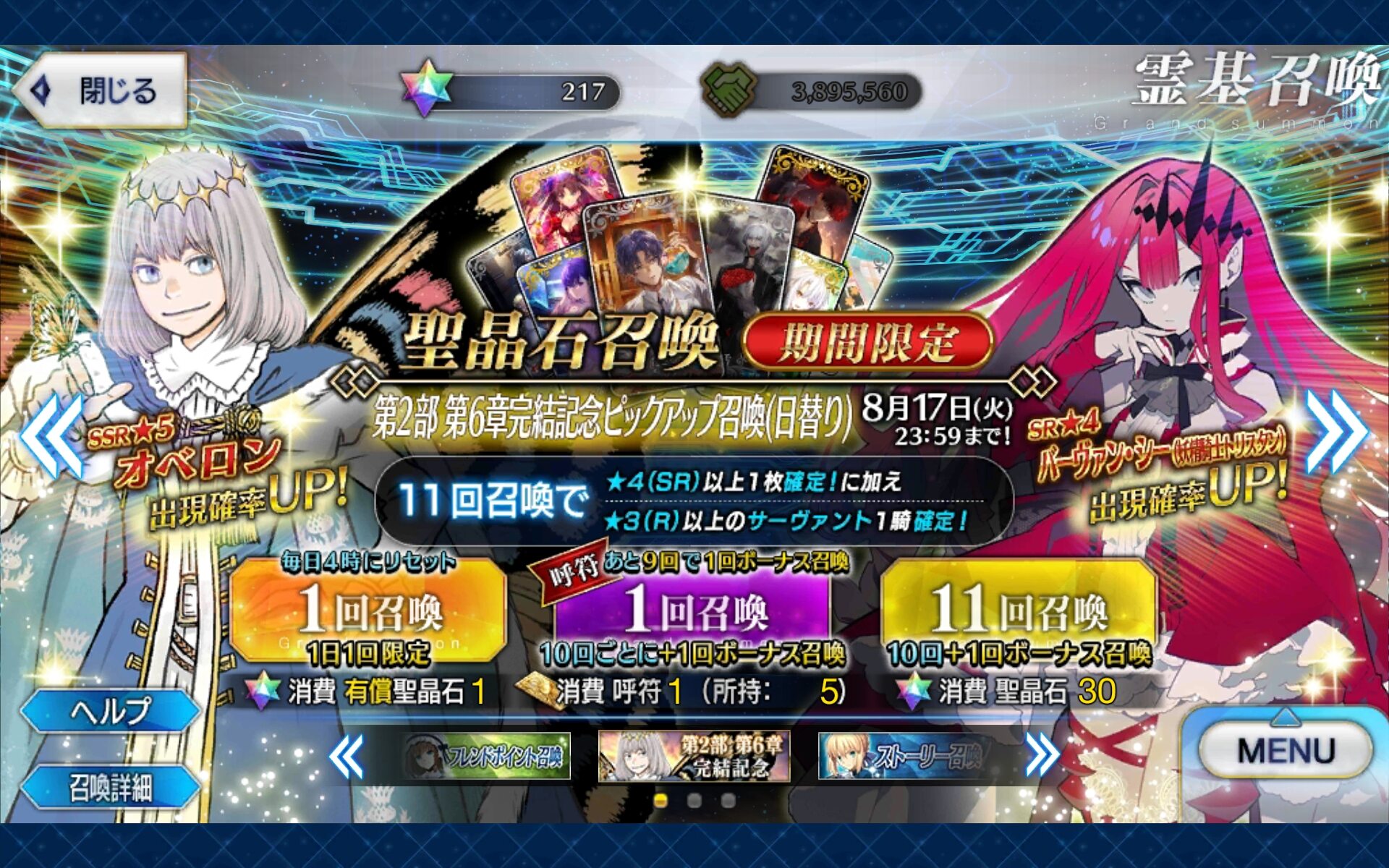 オベロンの宝具上げとバーヴァンシーの召喚を狙うよ