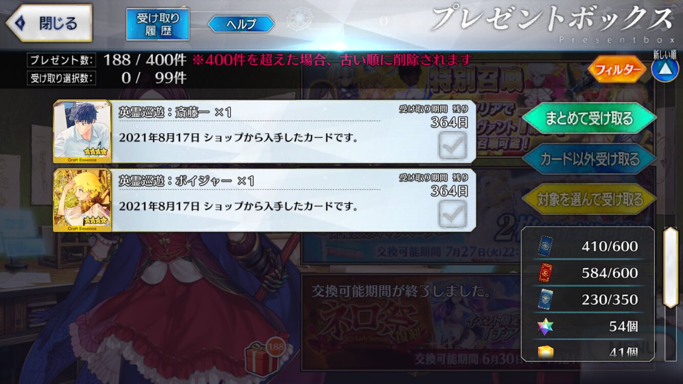 でもサーヴァントが入っているとしても水着サーヴァント星4が当たりにくくなるってことで…。ワタクシだけが星5を引き当てればいいのです!
