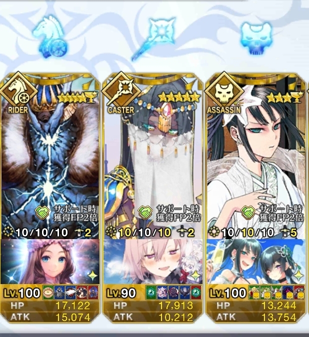 馬れた日は違えど、同じ日、同じ場所にて死なん!!トリ子試しに使ってみたのだけど、NP効率がすごく良いねぇ・・・星も結構出せるからクリティカルも出しやすいし、宝具の回りもいい。