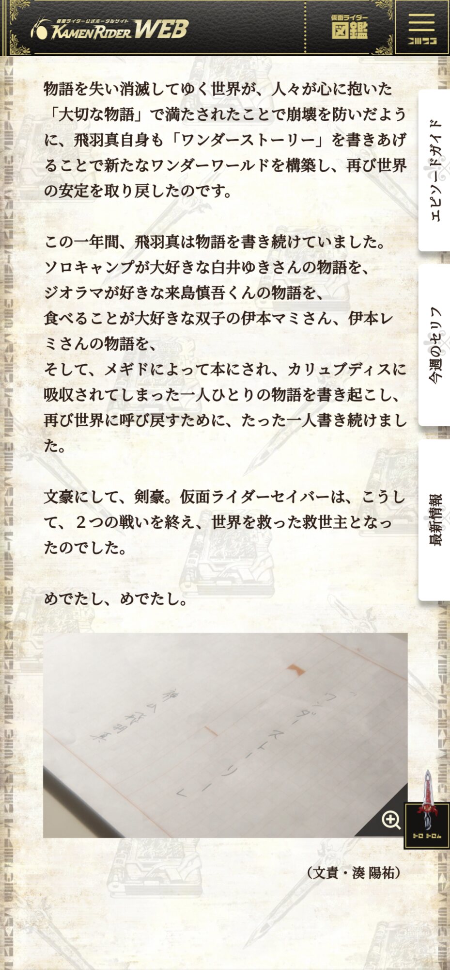 消えた年月分の物語も飛羽真先生に書いて貰えば時間経過によるギャップも解決やで!(尚全宇宙人類半分毎の物語)>>60