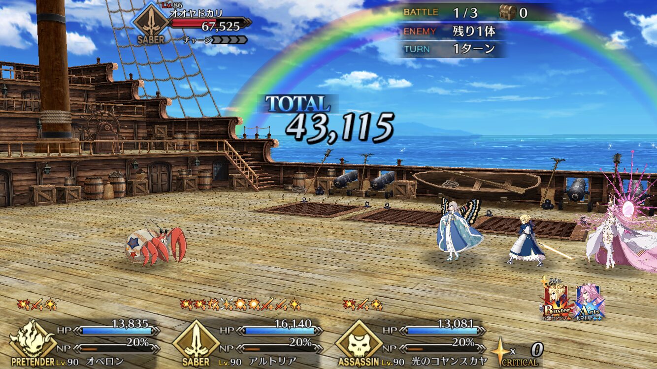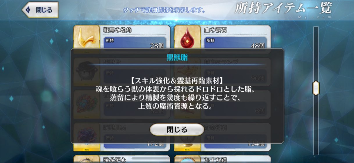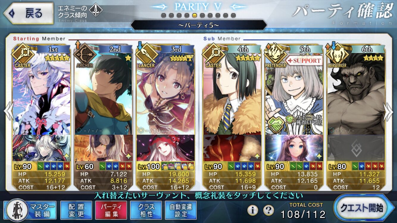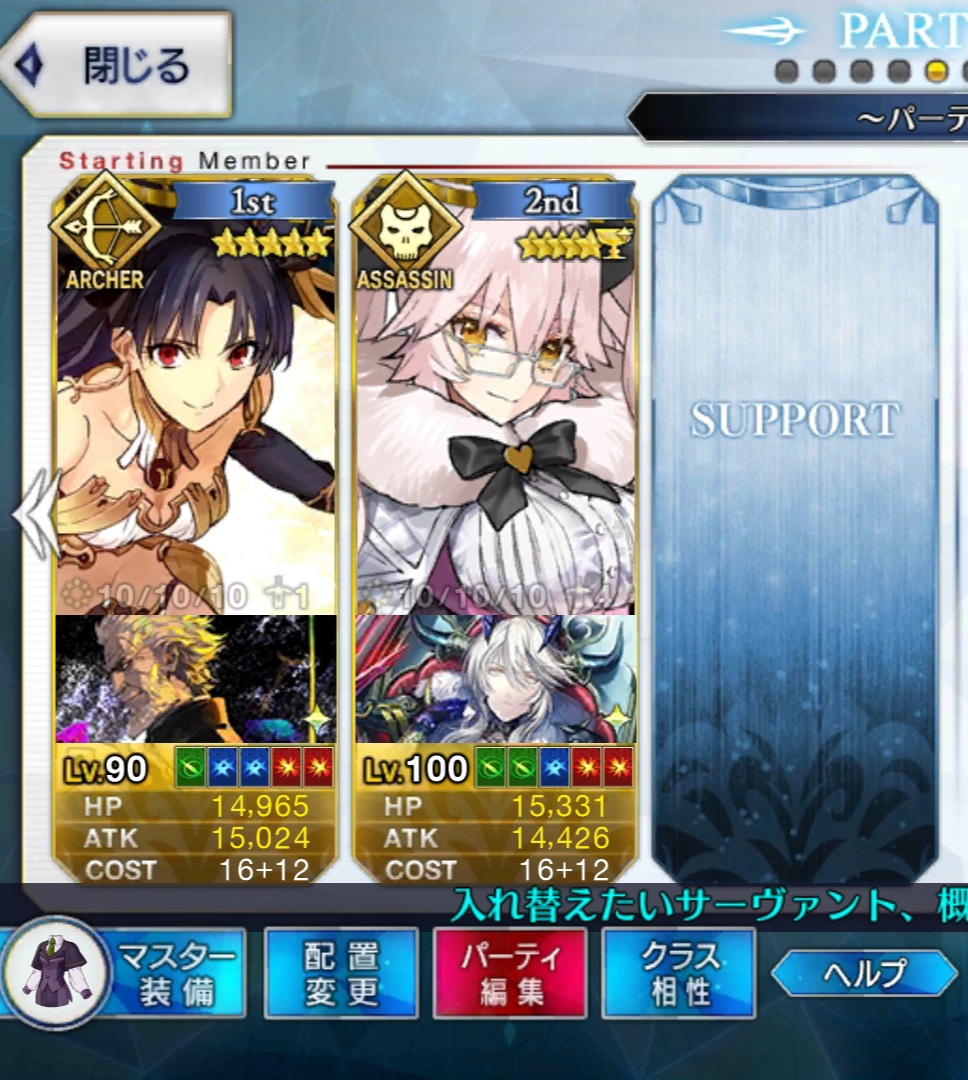 まあきのこだったら自分でそれならそれで帳尻合わせてくれるだろうきっと…何とかオベロンのスキル2をレベル10まで強化できた。1と3についてはQPと素材が溜まり次第上げる方向で、とりあえずサポートに配置。使ってくれるか心配だ(現時点で7/10/7)