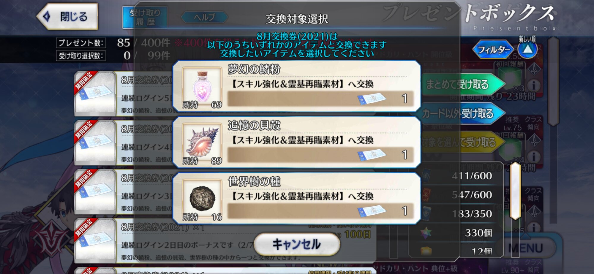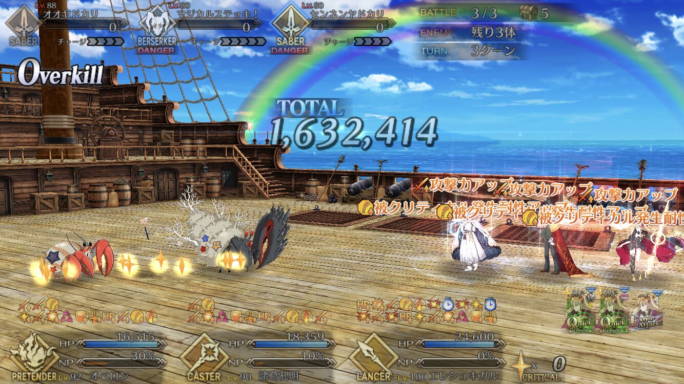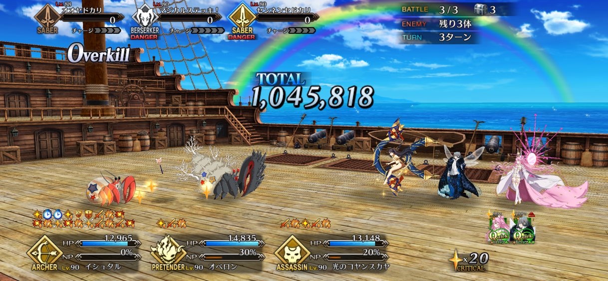 まあきのこだったら自分でそれならそれで帳尻合わせてくれるだろうきっと…何とかオベロンのスキル2をレベル10まで強化できた。1と3についてはQPと素材が溜まり次第上げる方向で、とりあえずサポートに配置。使ってくれるか心配だ(現時点で7/10/7)