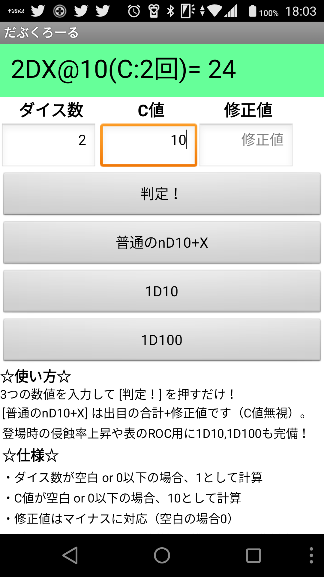 「8D10+2(技能)、クリ3回で36」