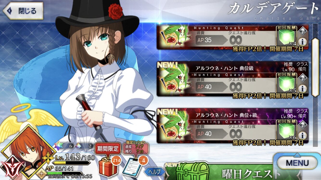 礼装はパーティ全員絆up礼装でもOK(´・ω・)oO(そういえばオベロン昼までか……むむむ)