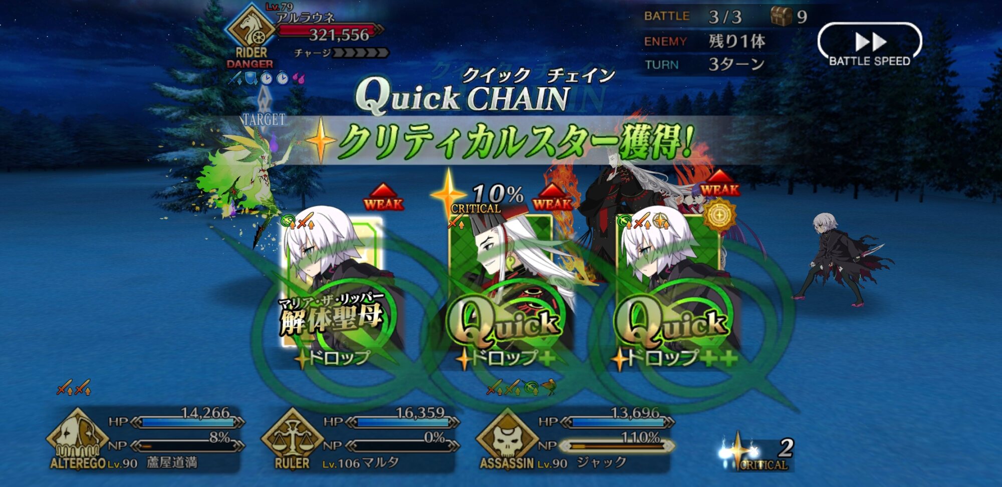アサシン相手で70%回収可能(クラススキル込)