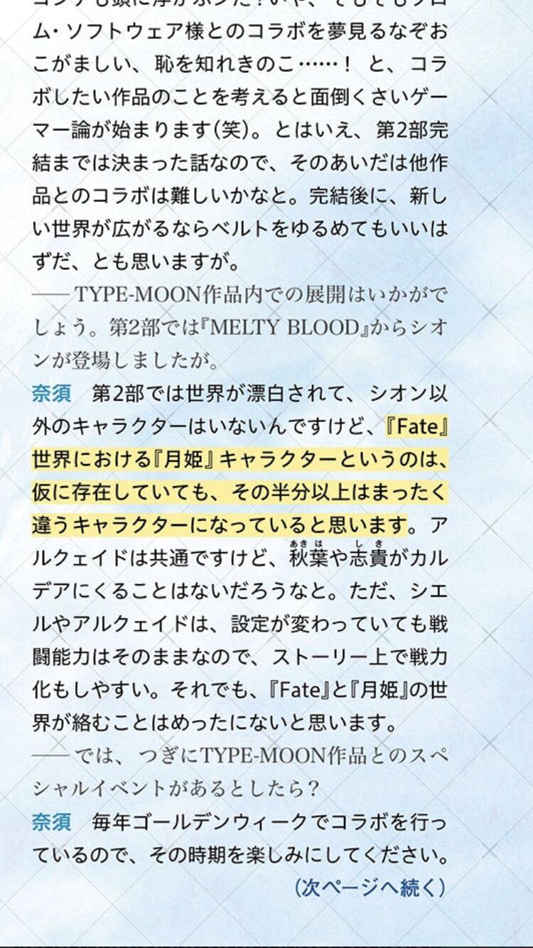 きのこの言ってた改変要素、ネロカオスが月姫に登場しないって意味だったのな
