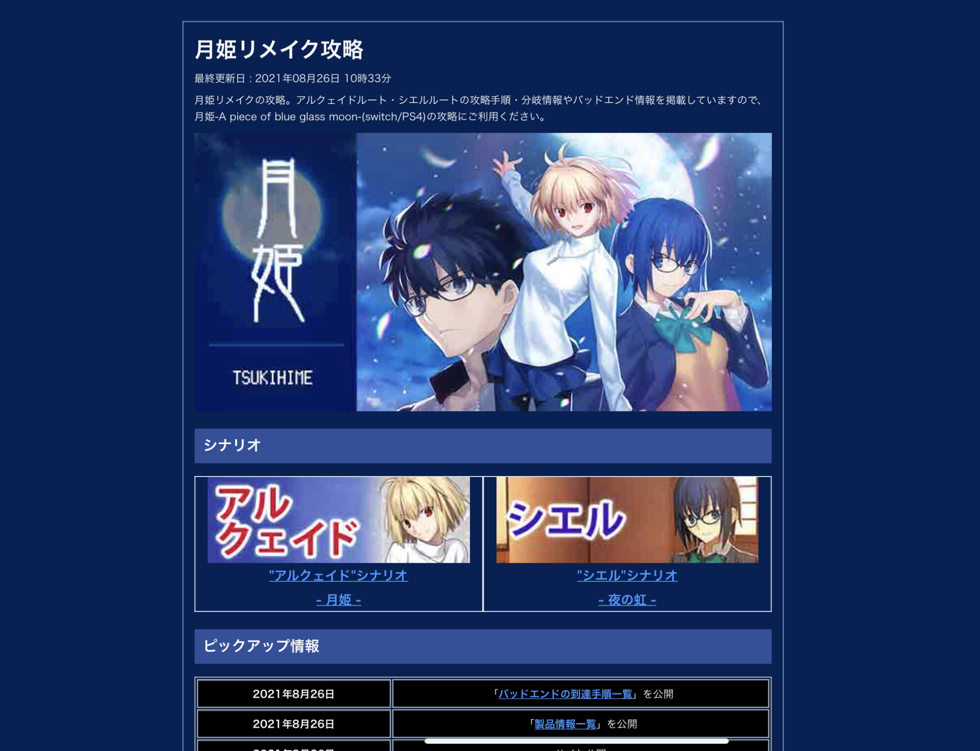 〈公式HP〉http://typemoon.com/products/tsukihime/