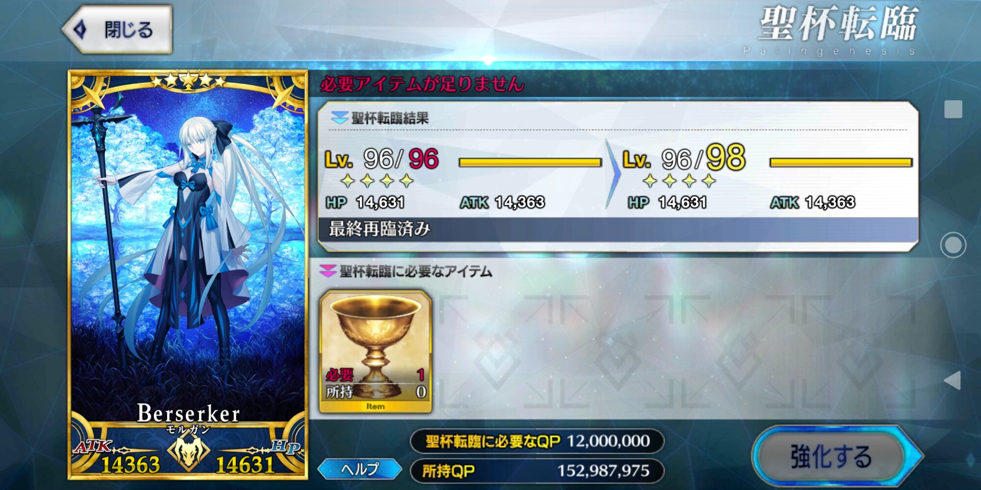 聖杯がなくてキャストリア116で止まってます