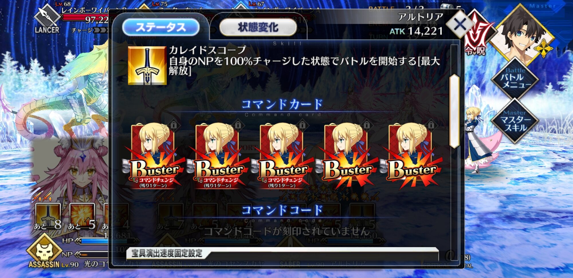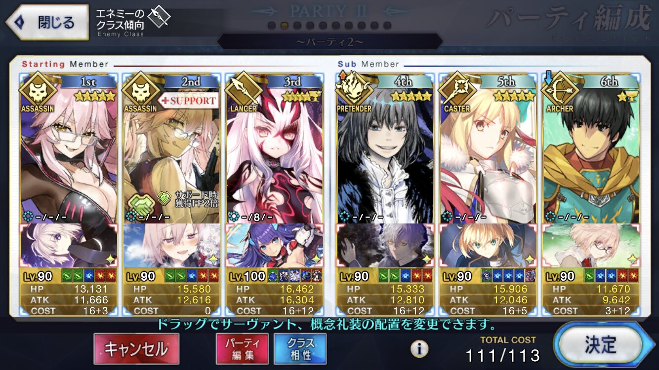 結局、弱体解除&NP補助&全体攻撃を阻むキャストリア(自前もしくはサポート)