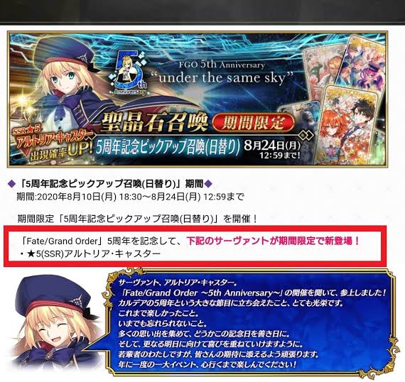 出る鯖のシルエットとか出してもええんやで?記念礼装配布と復刻ピックアップはありそうだけど、日付的にここまで来るとコラボイベントは無さそうな気もするんだよな